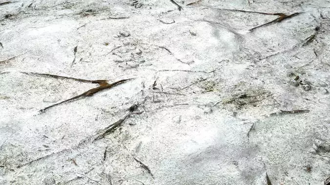 A high-quality 8K PBR texture depicting a snow-covered woodland path, featuring natural snow buildup, subtle ground variation, and realistic surface detail. Ideal for winter environments, outdoor scenes, and cinematic landscapes, this texture delivers excellent realism for both real-time and offline rendering.