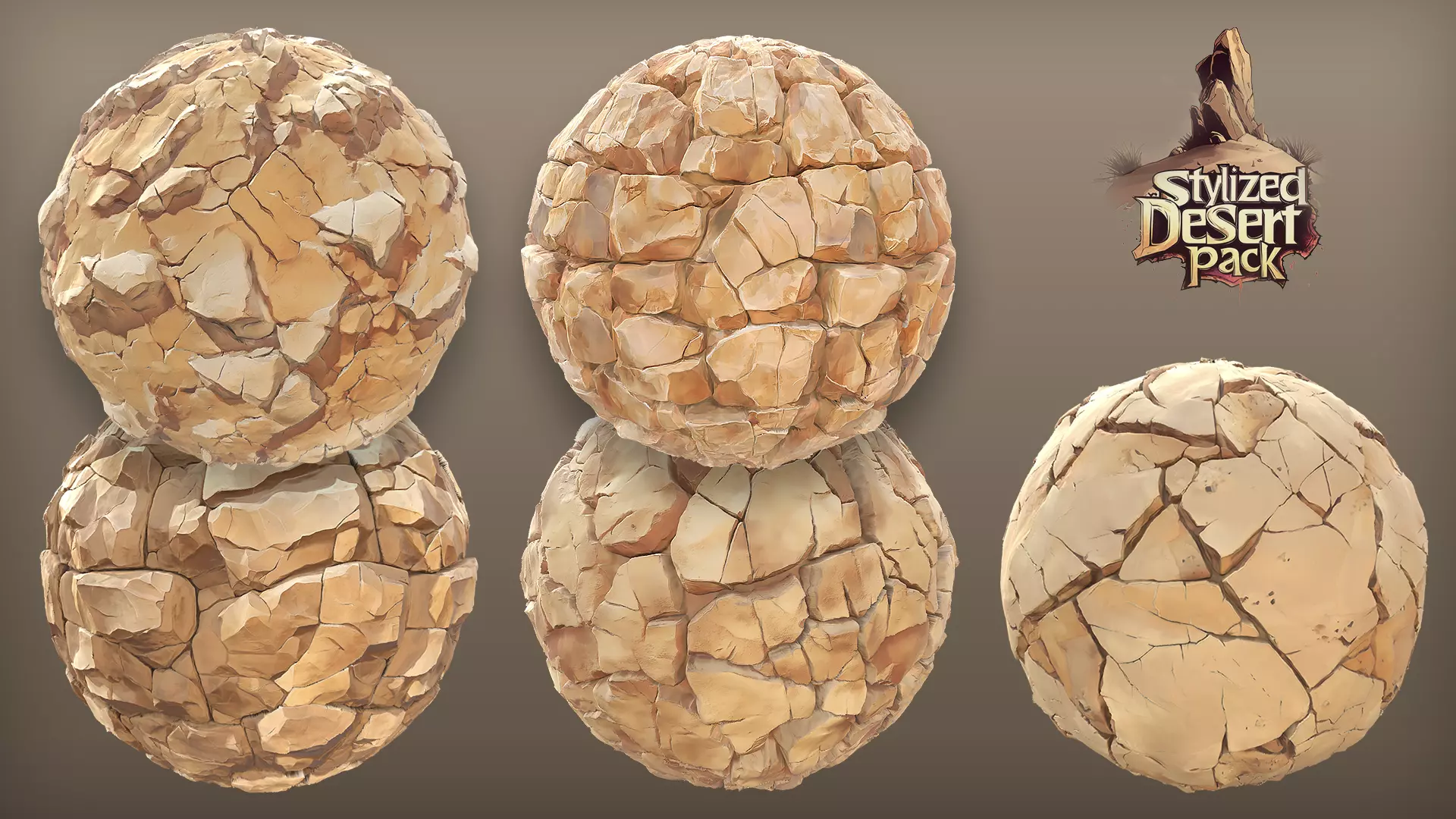 Stylized Desert Materials! Rocks, Sand, and more! The first collection of 5 high quality desert themed materials. 2k seamless PBR or also suitable for Unlit rendering as well. Enjoy!