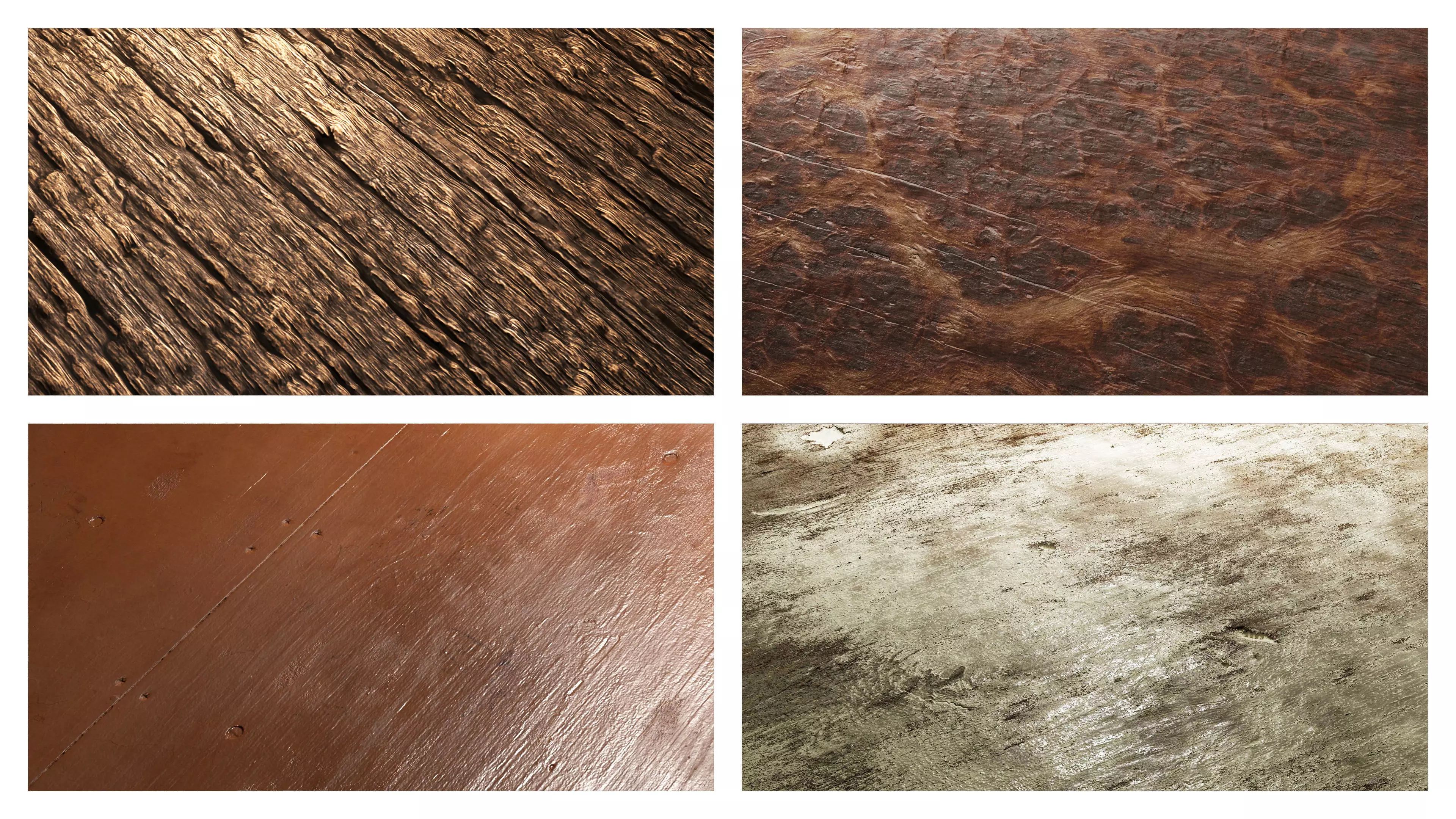 Keywords: wood PBR texture set, 8k wood materials, seamless wooden texture, rotting wood PBR, painted wood texture, wooden board material, tileable wood grain, game-ready wood textures, photorealistic wood surfaces