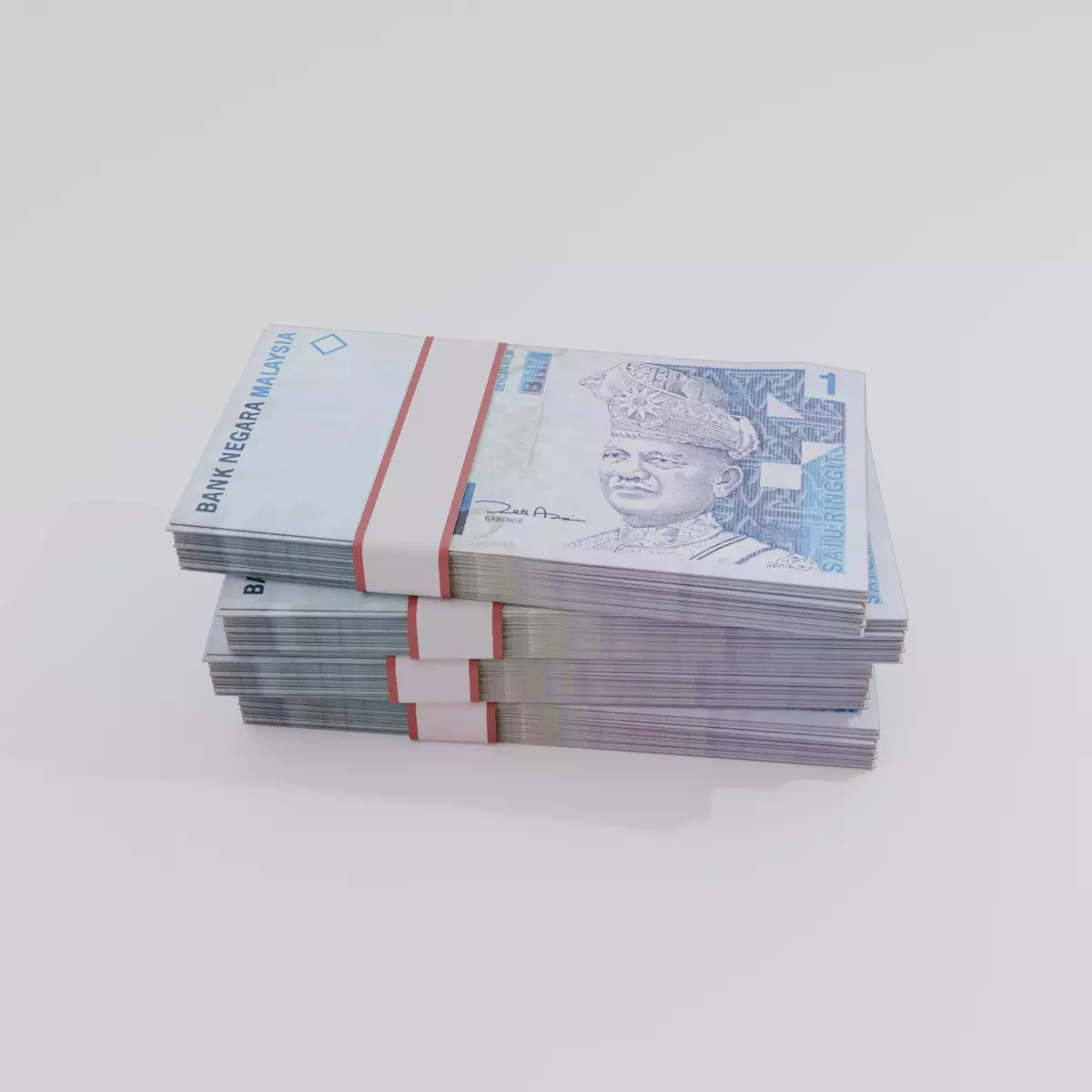 This is a realistic 3D model of the 1 Malaysian Ringgit (MYR) banknote, featuring accurate design details including national motifs, textures, and the portrait of the first Yang di-Pertuan Agong, Tuanku Abdul Rahman. It’s ideal for visual effects, games, simulations, financial apps, or educational content involving Southeast Asian currencies.