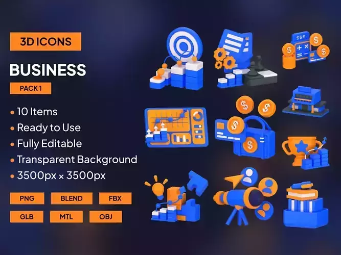 A bold yet friendly pack of business 3D icons. Ideal for apps, websites, packaging, social media contents, or marketing visuals. Delivered in high resolution and multiple file formats for flexible use across web, app, or print.
