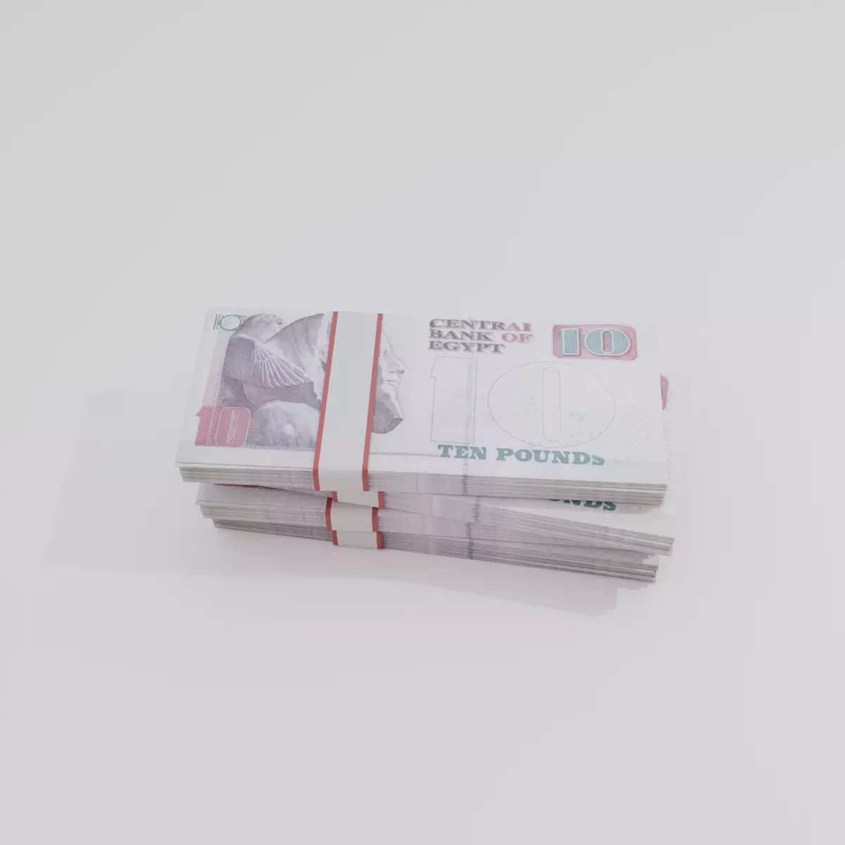 This 3D model showcases the 10 Egyptian Pound banknote, a blend of Pharaonic grandeur and Islamic architectural elegance. The front side usually displays a famous mosque, such as the Al-Rifa'i Mosque, highlighting Egypt’s Islamic era, while the back features an Ancient Egyptian motif, such as carvings from the Temple of Hatshepsut or hieroglyphic figures, reflecting the nation’s ancient legacy. The color palette often includes rich greens and purples, giving the note an ornamental and symbolic appeal.