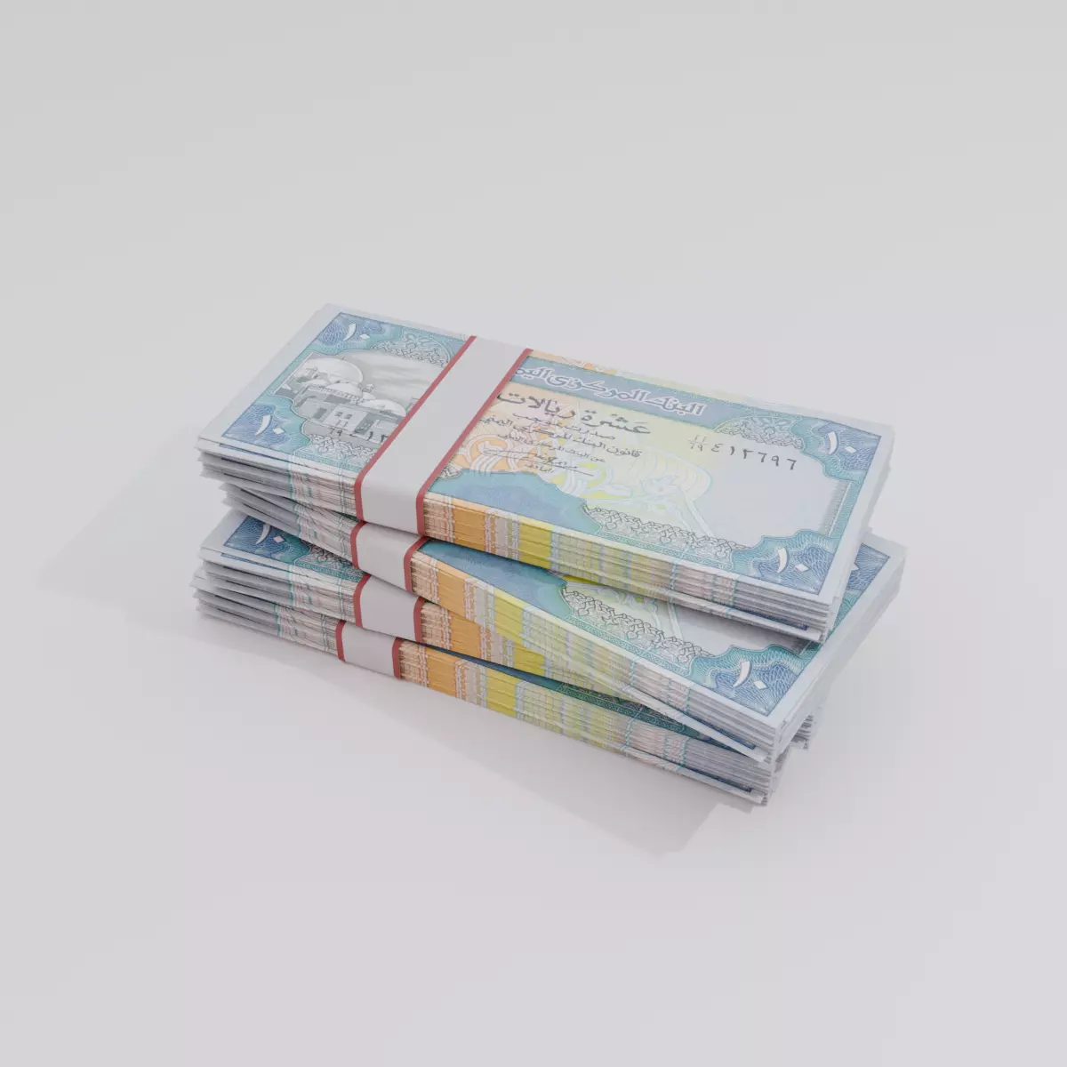 This is a realistic 3D model of the 10 Yemeni Rial (YER) banknote, designed with accurate proportions, authentic Arabic calligraphy, and traditional design elements. Ideal for use in educational content, economic simulations, AR/VR environments, games, and visual storytelling projects related to Middle Eastern or global currency systems.