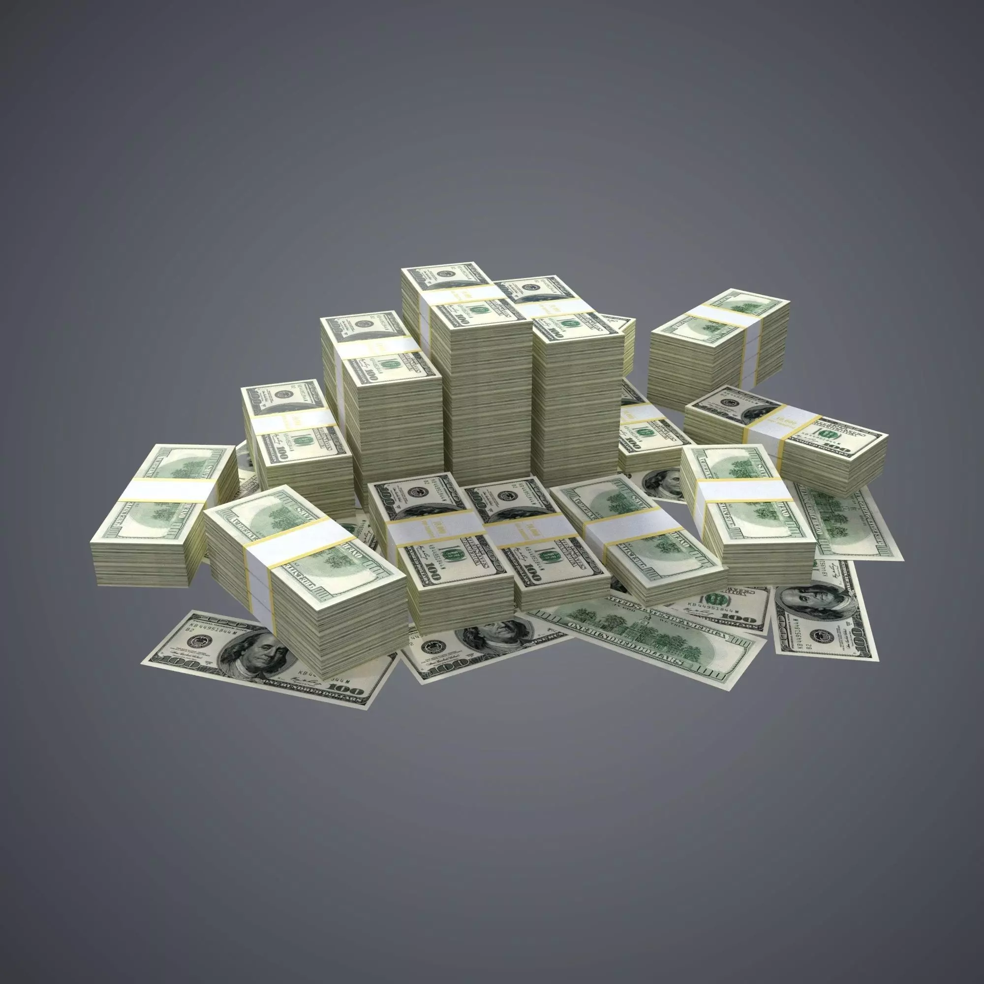 -High quality 3d model of 100 Dollar Bills Packs for Photo Realistic HD show.