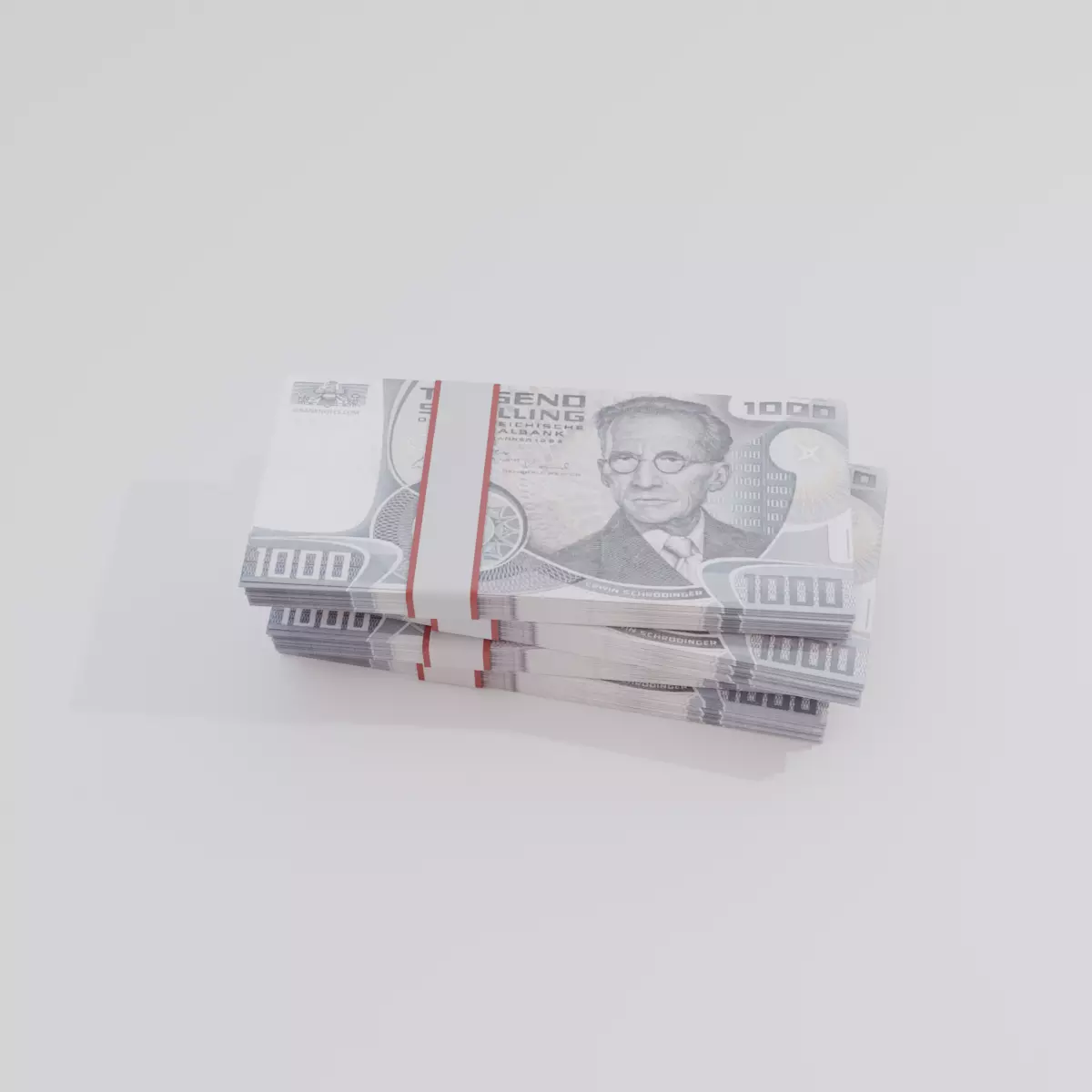 Austrian pre-euro banknote. Front features Karl Landsteiner; back shows scientific imagery. Blue-violet theme. Great for education, science, or vintage-themed 3D scenes.