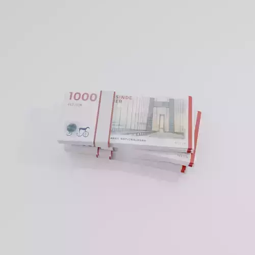 Top-value Danish banknote. Reddish in color, often features historical architecture and bridges. Great for 3D models, financial props, or educational content.