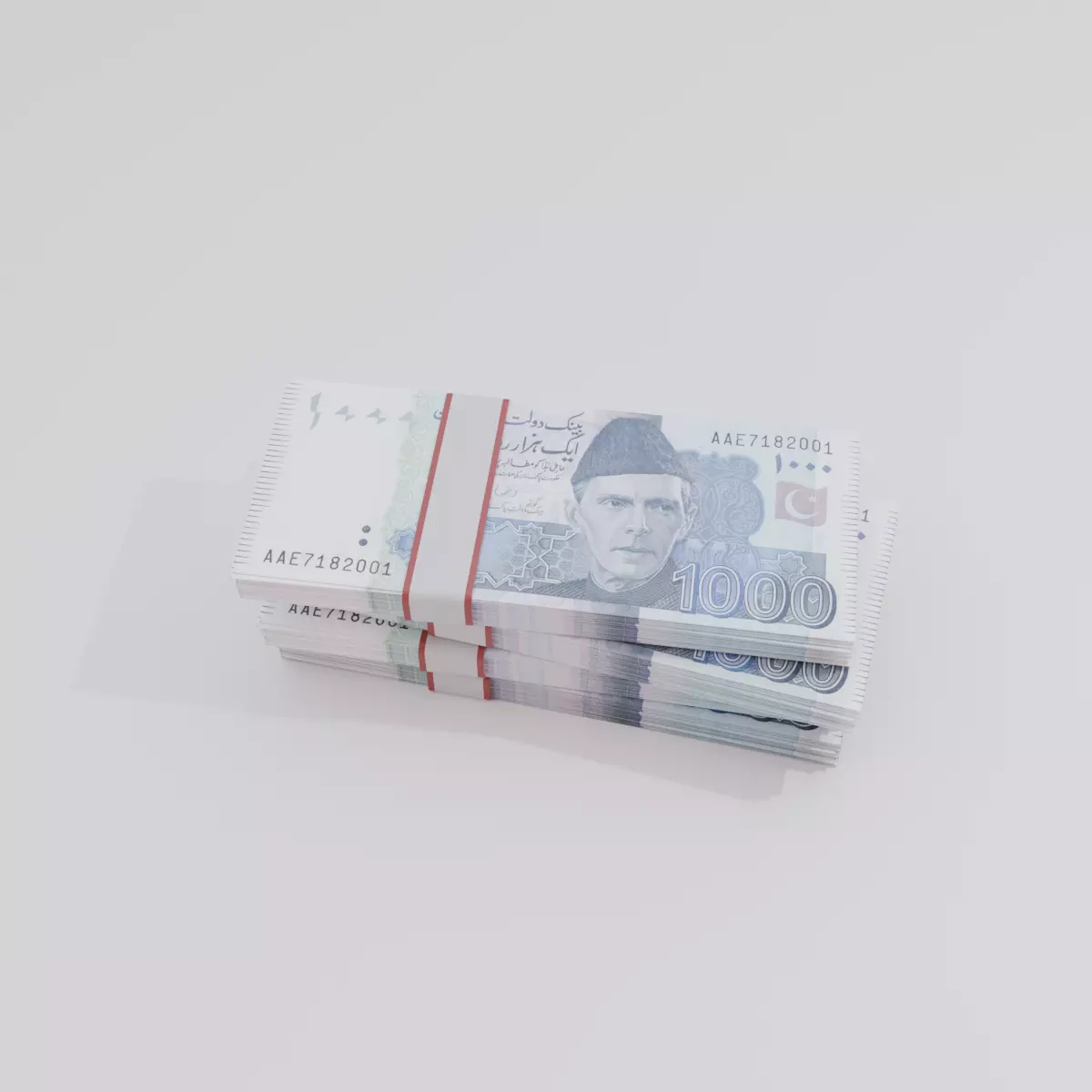 A meticulously detailed 3D model of the 1000 Pakistani Rupee (PKR) banknote, crafted to accurately represent the official note issued by the State Bank of Pakistan. This model features high-resolution textures, Urdu and English text, precise patterns, security markings, and the iconic portrait of Quaid-e-Azam Muhammad Ali Jinnah. Perfect for use in animations, virtual financial environments, educational visuals, and gaming assets.