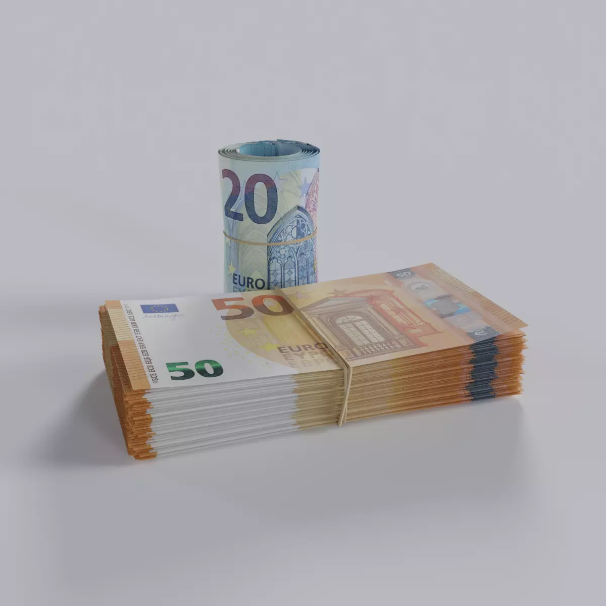 High quality, fully textured 3d models collection of 20 and 50 euro bills in stacks.One roll and one stack.Ready to subdivide if necessary.Optimal polygons density.