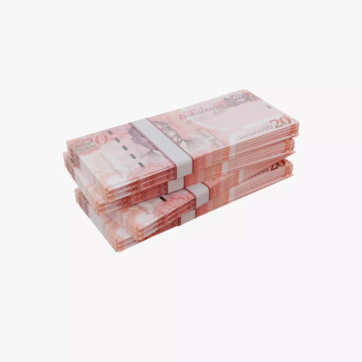 Premium 20 Botswana Pula (BWP) banknote 3D model with realistic detailing, high-resolution textures, and clean optimized mesh. Perfect for financial scenes, animations, and game-ready environments.