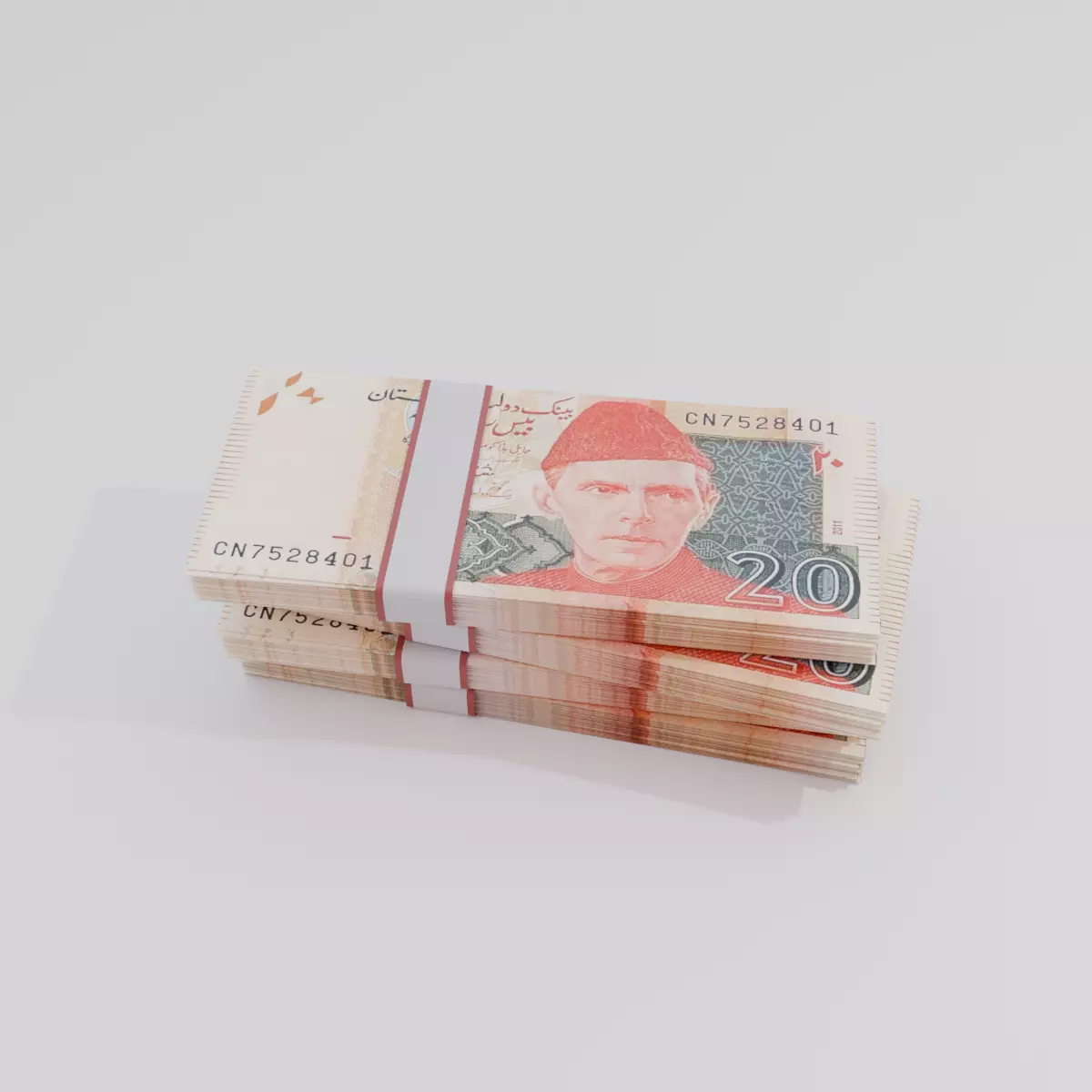 Realistic and detailed 3D model of the 20 Pakistani Rupee (PKR) banknote. This model is crafted with precision to reflect the design, color palette, and textual elements found on the real note. Perfect for use in financial simulations, educational content, animation, gaming, and AR/VR experiences.