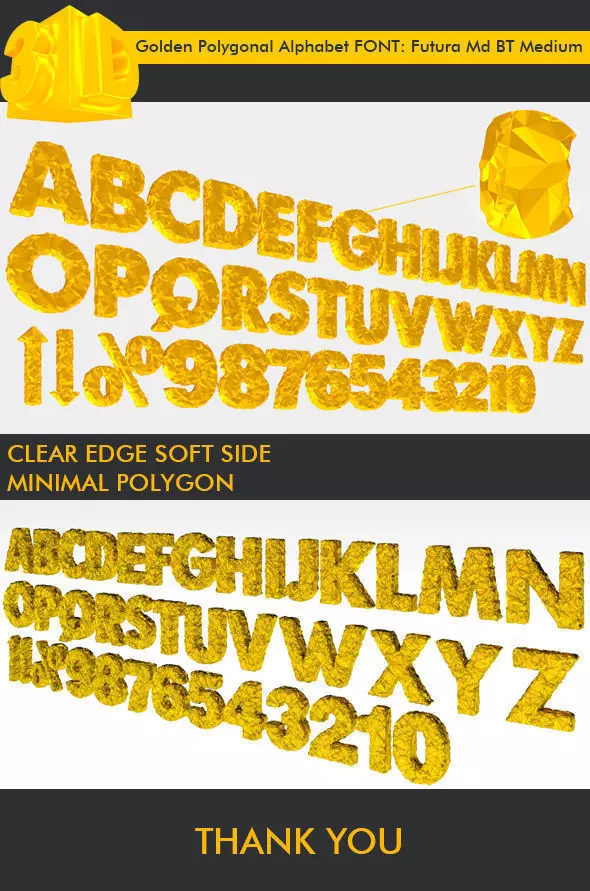 3D Golden Polygonal Alphabet 39 PCS Low-poly 3D model