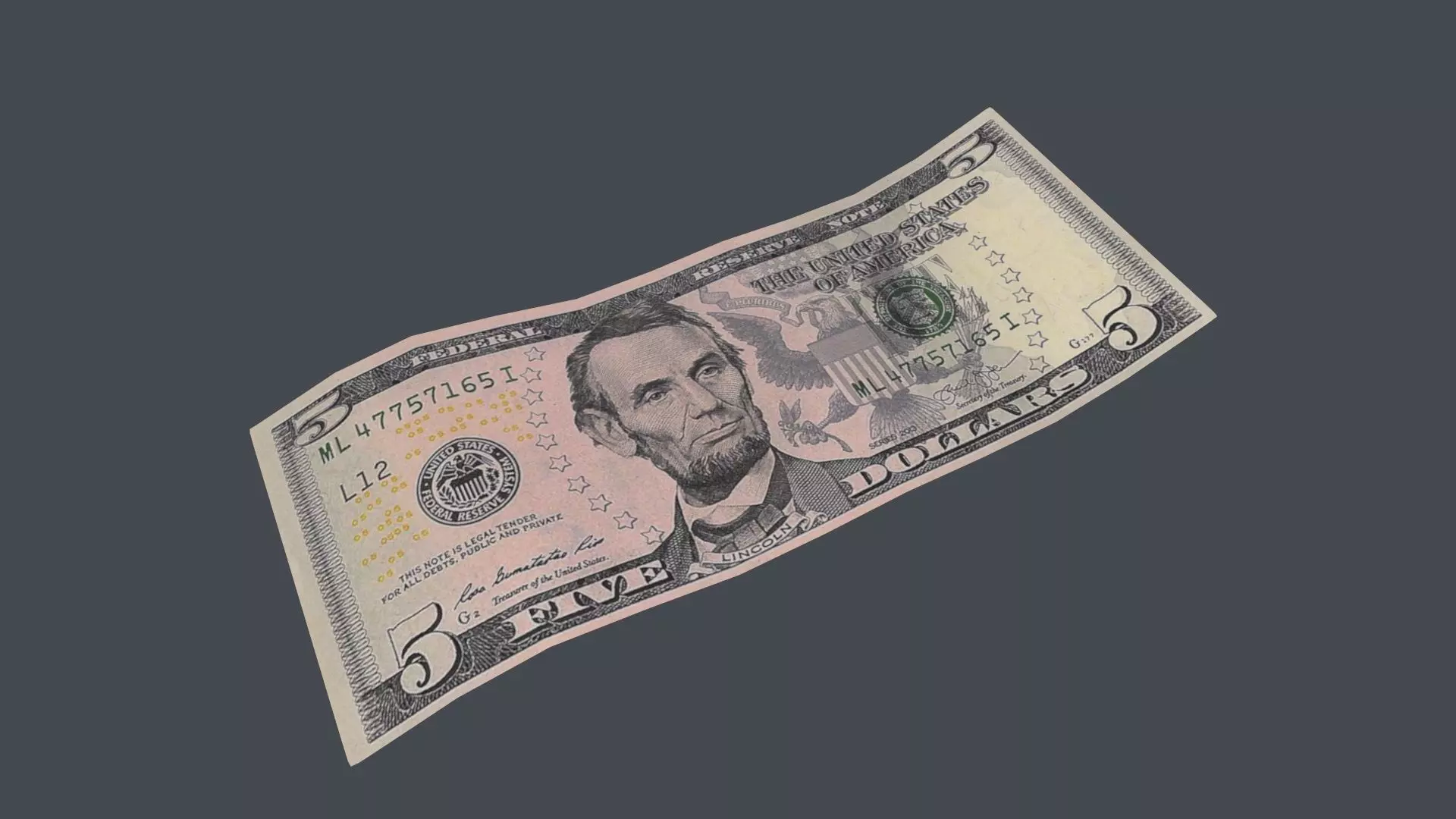5 Dollar Bill 3D Model Low-poly 3D model