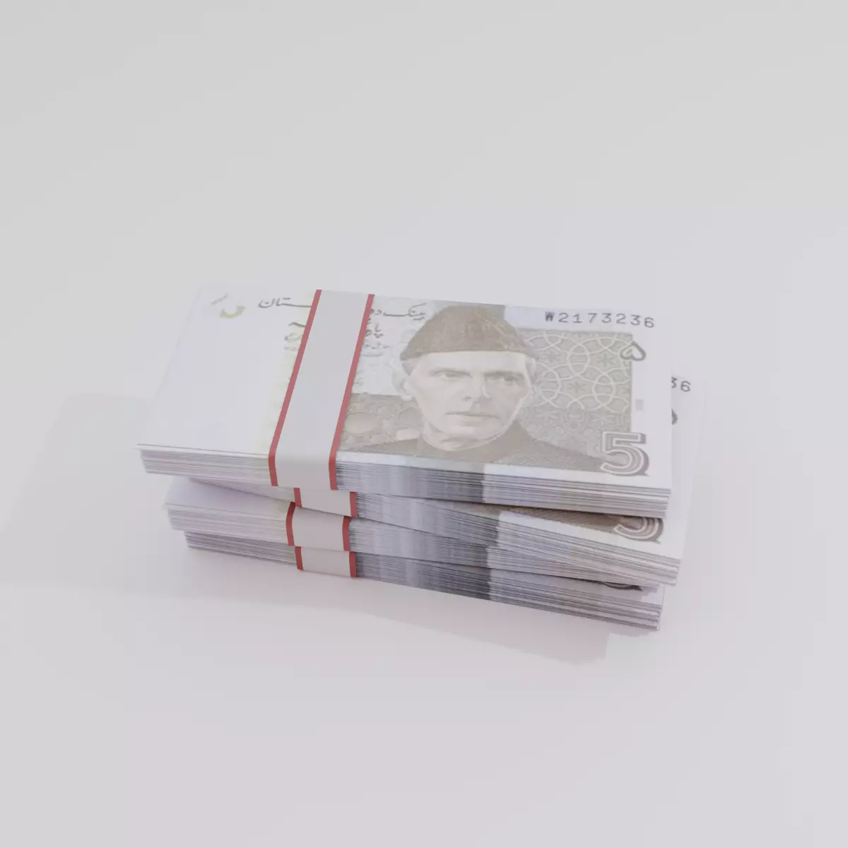 A high-quality, realistic 3D model of the 5 Pakistani Rupee (PKR) currency note. This model is designed with accurate proportions, authentic detailing, and textures that match the real banknote. Perfect for digital projects such as educational content, historical presentations, economic simulations, and gaming or AR/VR environments.