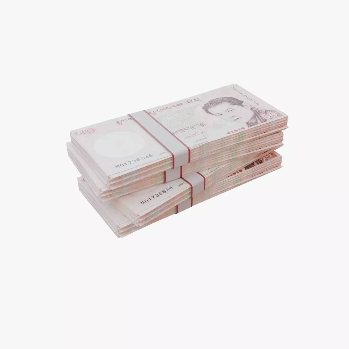 Premium 50 Bhutanese Ngultrum (BTN) banknote 3D model with realistic detailing, high-resolution textures, and clean optimized mesh. Ideal for close-up renders, financial scenes, and game-ready projects.