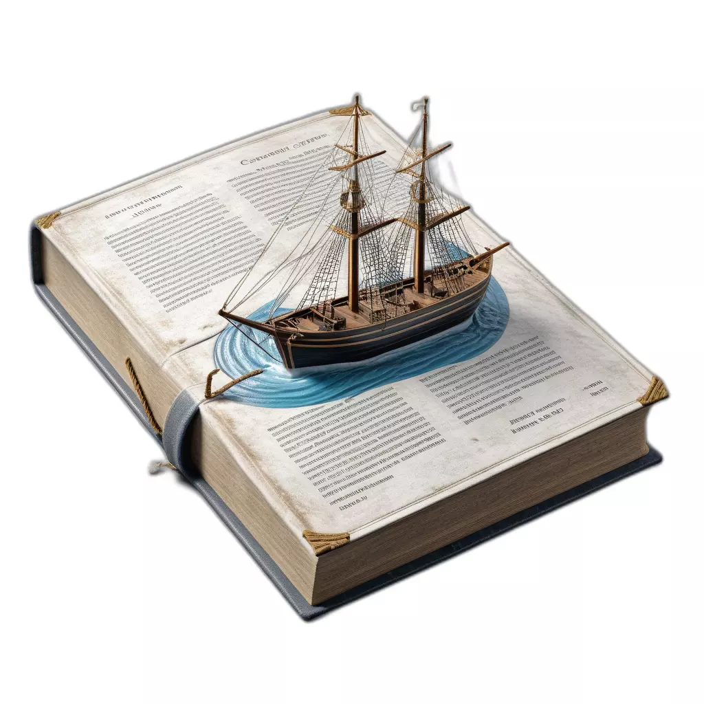 This highly detailed 3D model depicts an antique open book with a classic sailing ship majestically emerging from its pages, surrounded by stylized ocean waves. It masterfully blends elements of history and fantasy, creating a captivating visual narrative. This unique asset is ideal for a variety of digital projects, including enriching game environments for adventure or puzzle games, adding sophisticated decor to architectural visualization scenes of libraries or studies, and enhancing immersive AR/VR experiences. Digital artists will find it an inspiring centerpiece for storytelling illustrations or concept art. The model is crafted with meticulous attention to detail, featuring clean topology and UV unwrapped meshes, ensuring excellent performance and rendering quality. It comes complete with high-resolution PBR textures that accurately capture the aged leather of the book, the worn paper, the rich wood of the ship, and its intricate rigging. Supported file formats include GLB, OBJ, FBX, USD, DAE, and ABC, providing broad compatibility across various 3D software and engines. While highly detailed for stunning static renders, the model is also designed to be optimized for real-time applications, making it versatile for both high-fidelity cinematics and interactive virtual worlds. Its detailed construction ensures it serves as a prominent focal point in any scene, ready to tell its own story.