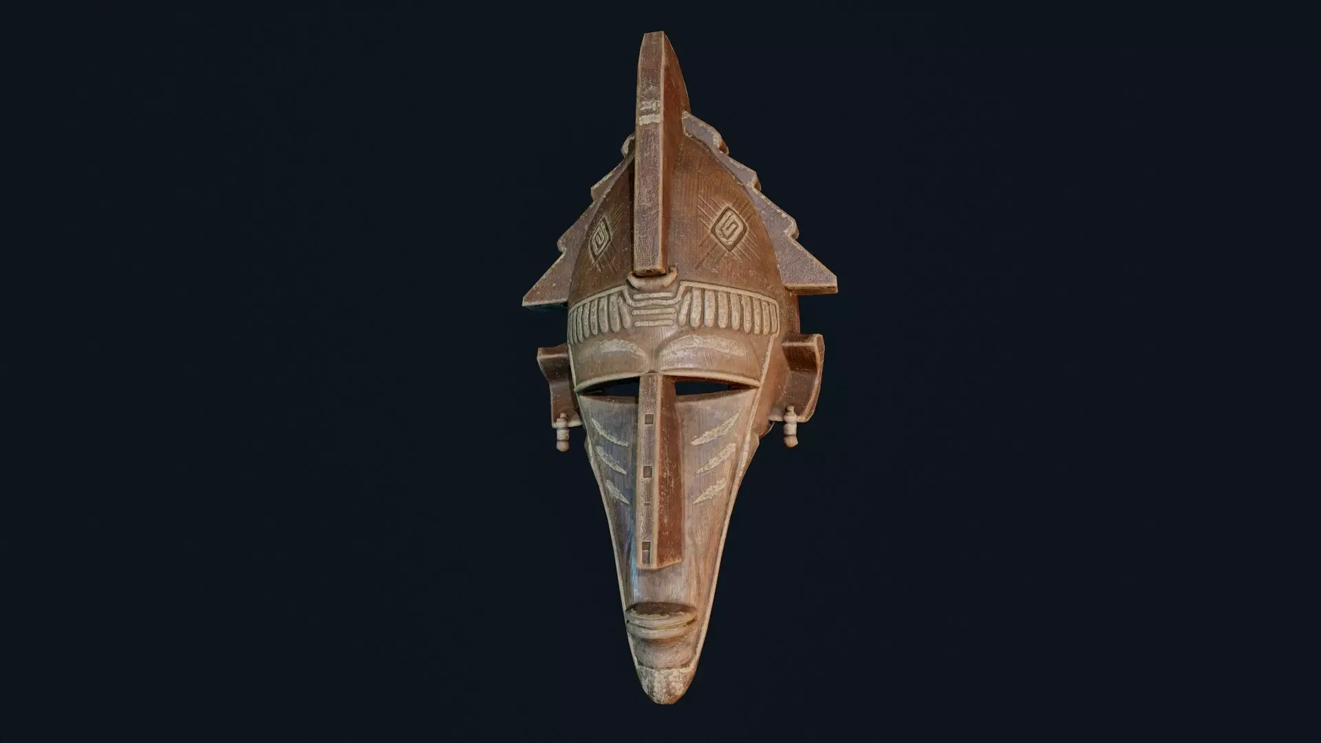 The mask imitates hand-carved wood and natural pigments, reflecting the rich culture and traditions of African art. It is perfect for use as African decor in interiors, visualizations, design projects, and games.