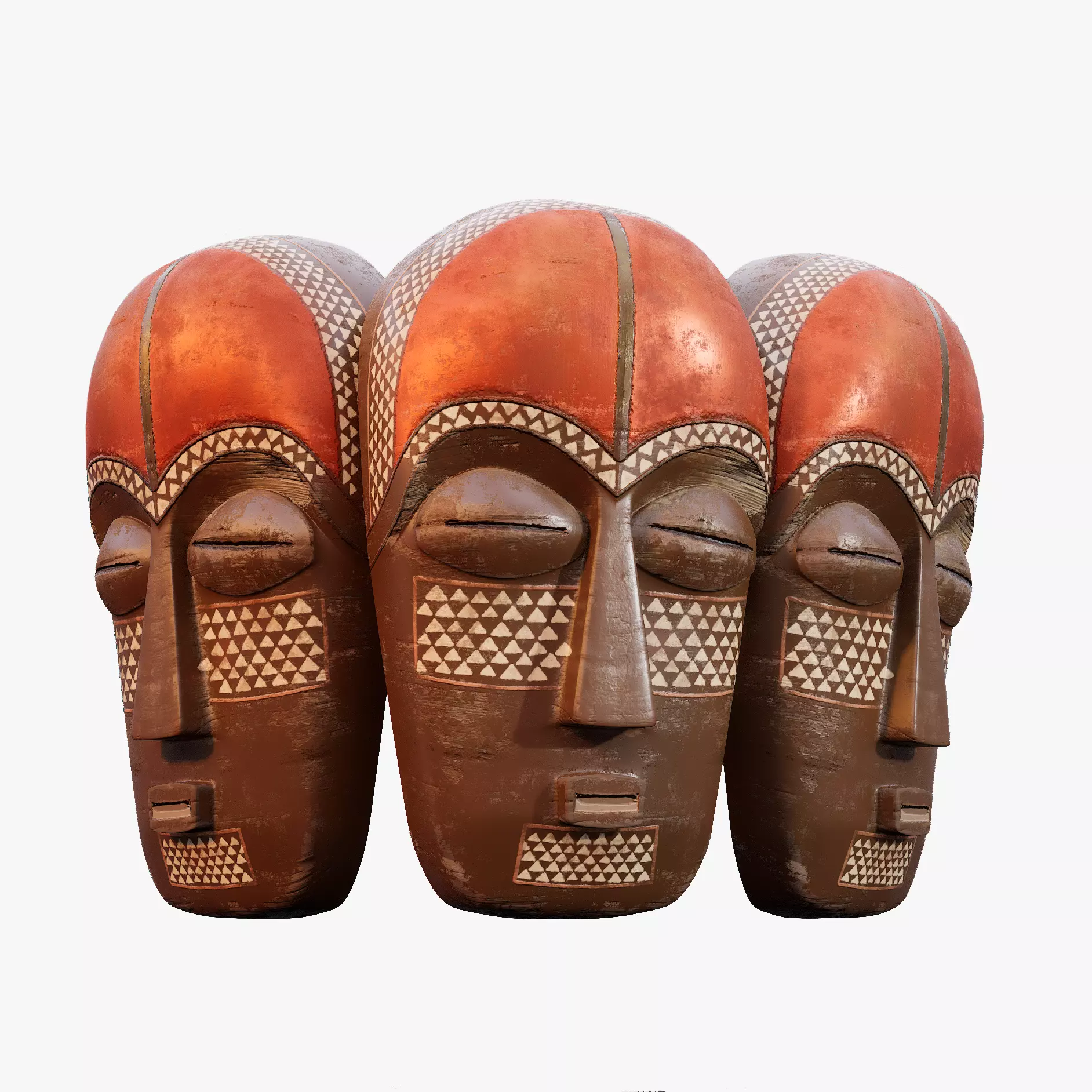 African mask for real-time graphics, preview images are rendered with unreal engine 5. References for producing this model were from google search African or Voodoo masksModeled with Blender Textured with Substance Painter 2k textures BaseColor Normal AO+R+M, Opacity mask.