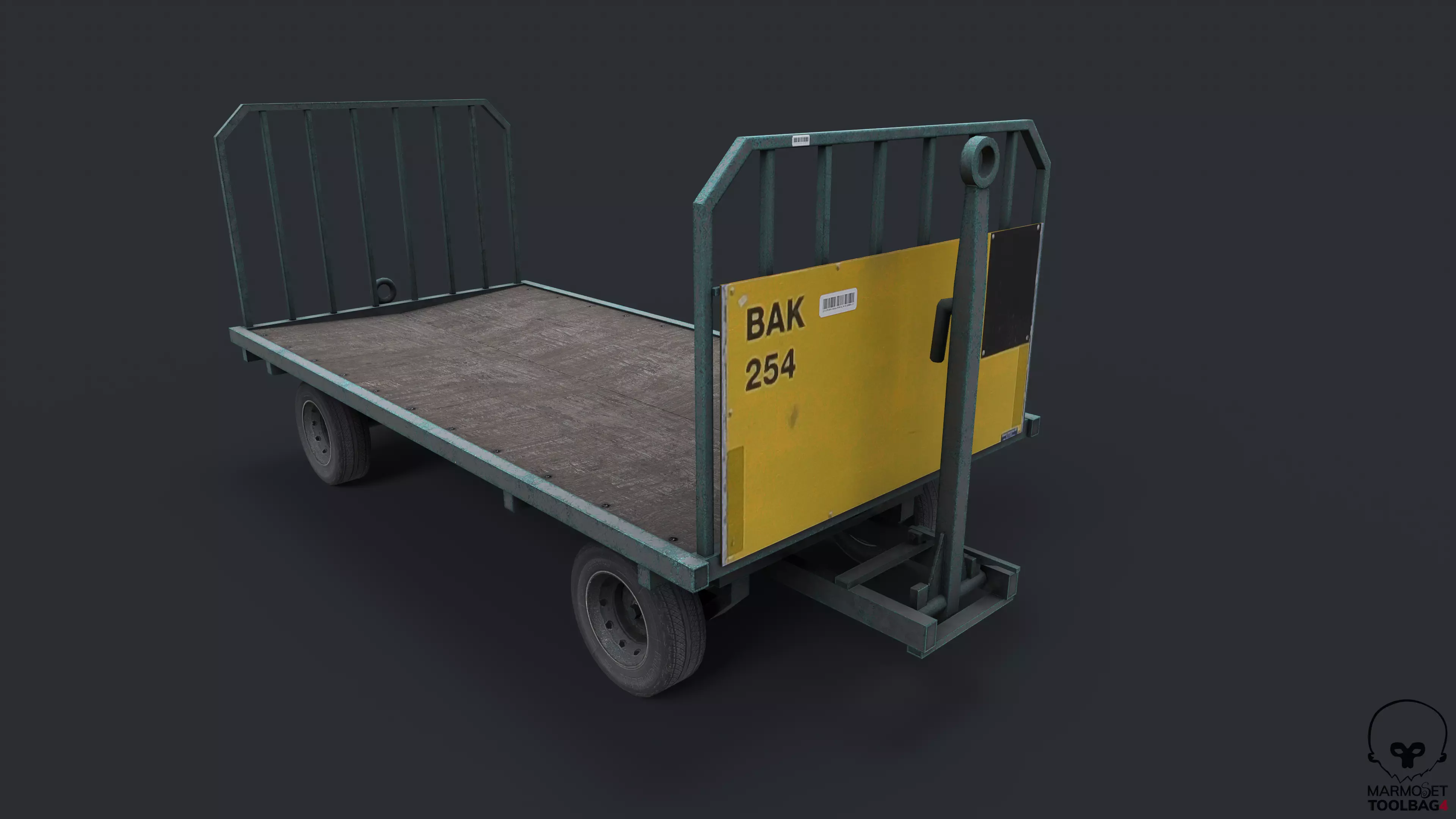 Used to transport luggage from a luggage sorting facility to the aircraft, a luggage cart is an integral part of any airport operation no matter the size. This model has about 3000 polygons and is unwrapped to a single texture sheet with both non overlapping and overlapping parts. Normal maps were baked in Marmoset toolbag, the highpoly and lowpoly were made in Blender and the model was textured in Substance Painter 2021.