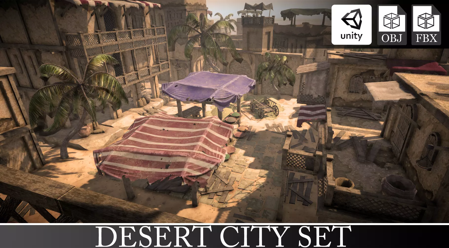 Desert City Set contains number of various models for constructing very detailed Ancient Egyptian style towns or villages. From numbers of already build houses models and house building parts with long list of props offers endles posibility for constructing beautiful scenes.