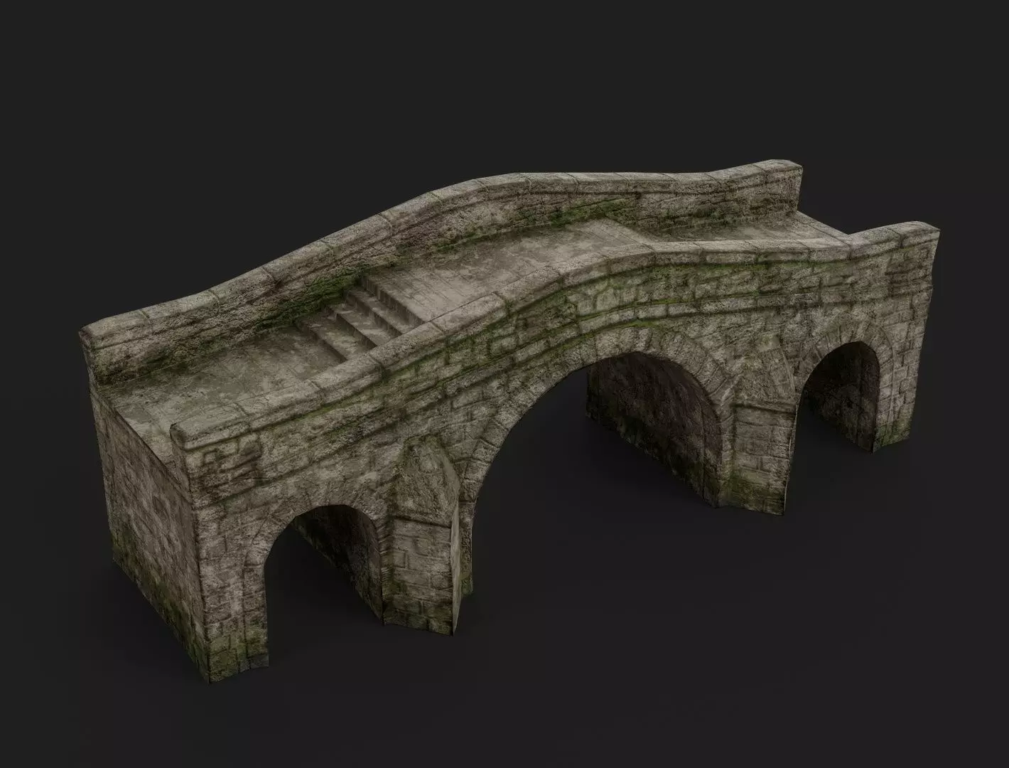 Ancient Mossy Stone Bridge Low-poly 3D model