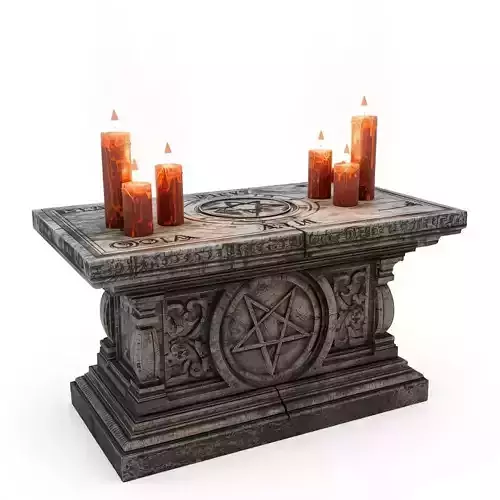 Key Features:Imposing stone altar with weathered, ancient textures.Prominent inverted pentagram carving and intricate Gothic details.Cryptic symbols and runes etched into the tabletop.Seven blood-red, melting pillar candles with flickering flames.Ideal for dark fantasy, horror, occult, and ritualistic themes.Optimized for animations, games, and high-quality renders.High-quality mesh and profoundly atmospheric details.Great for game developers, fantasy artists, and immersive scene creation.20 One-Word Tags:AltarRitualOccultPentagramCandlesStoneAncientDarkFantasyHorrorGothicCovenMagicSacrificeDungeonPropMysticalShrineDemon