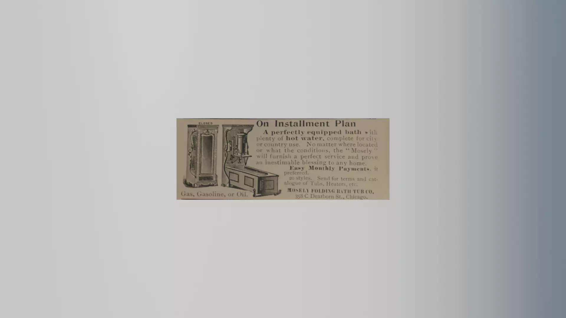 This is a model of a Mosley Folding Bathtub ad I believe to be a cutout from a 1895 catalog. Mosley folding bathtubs where manufactured from 1880 to 1900 as a way to bathe without having all the space needed for a traditional bathtub. They were advertised as A perfectly equipped bath and No Bathroom required. The mosley folding bathtub produced 20 styles of bathtubs over the years. The one in this pictureis a type that looked like a stand-alone mirror when closed. I have a model of another mosley ad in my store that depicts a version that was similar except the mirror did not go down to the bottom and the unused space was taken up by fake decorative drawers. If you like this model please give it a like and a good review to help others find it.