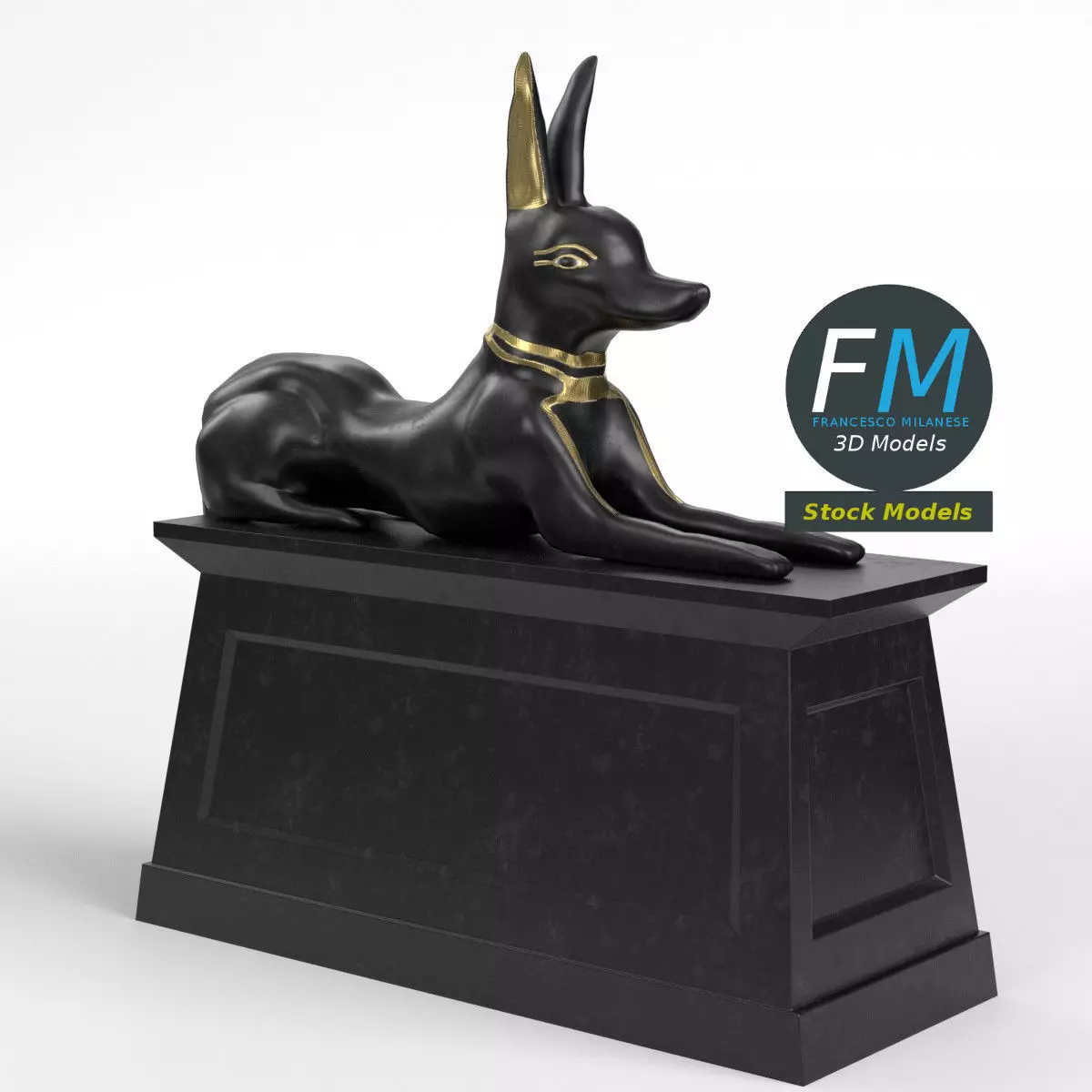 Anubis shrine 3D Model. 2 individual objects (statue, pedestal), each one with its own non overlapping UV Layout map, Material and PBR Textures sets. Production-ready 3D Model, with PBR materials, textures, non overlapping UV Layout map provided in the package.Quads only geometries (no tris/ngons).Easily customizable: UV unwrapped geometries; UV Layout maps provided in the package as png with alpha images.Each Object, Material or Texture provided in the package has a unique, meaningful name.Made in Blender 4.3.2 with Cycles Principled BSDF PBR shader with textures included (Eevee compatible), then exported to OBJ and FBX; materials and textures made in Substance Painter (Adobe 3D Painter), exported for PBR, Cycles, V-Ray, Unity, Unreal.PROMO IMAGES: the first image has been rendered in Cycles for Blender; in particular, you can find 11+ promo images in this description: