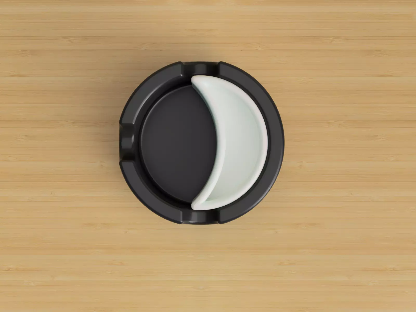 Description of my product, whose design and trademark registration belongs to me:To extinguish the cigarette, the user touches the butt to the water in the white chamber, then throws the extinguished butt into the black chamber, that is, the ashtray, in one move, so that the ashtray section does not get too dirty . At the same time, the positioning of the water in the white chamber was preferred to draw attention to the cleanliness of the water. The reason why the black part of the ashtray chamber is this color is to cover the visual pollution that occurs on the white surface due to ashes and draw attention to the badness of cigarettes. All rights are reserved. Licensed product.