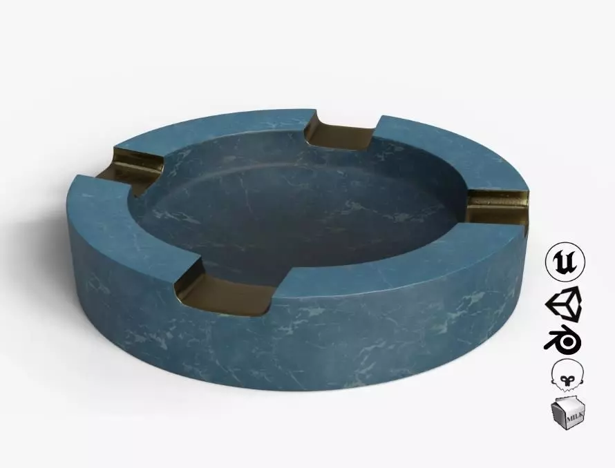 PBR realistic 3D model of an ashtray, suitable for renders and games.