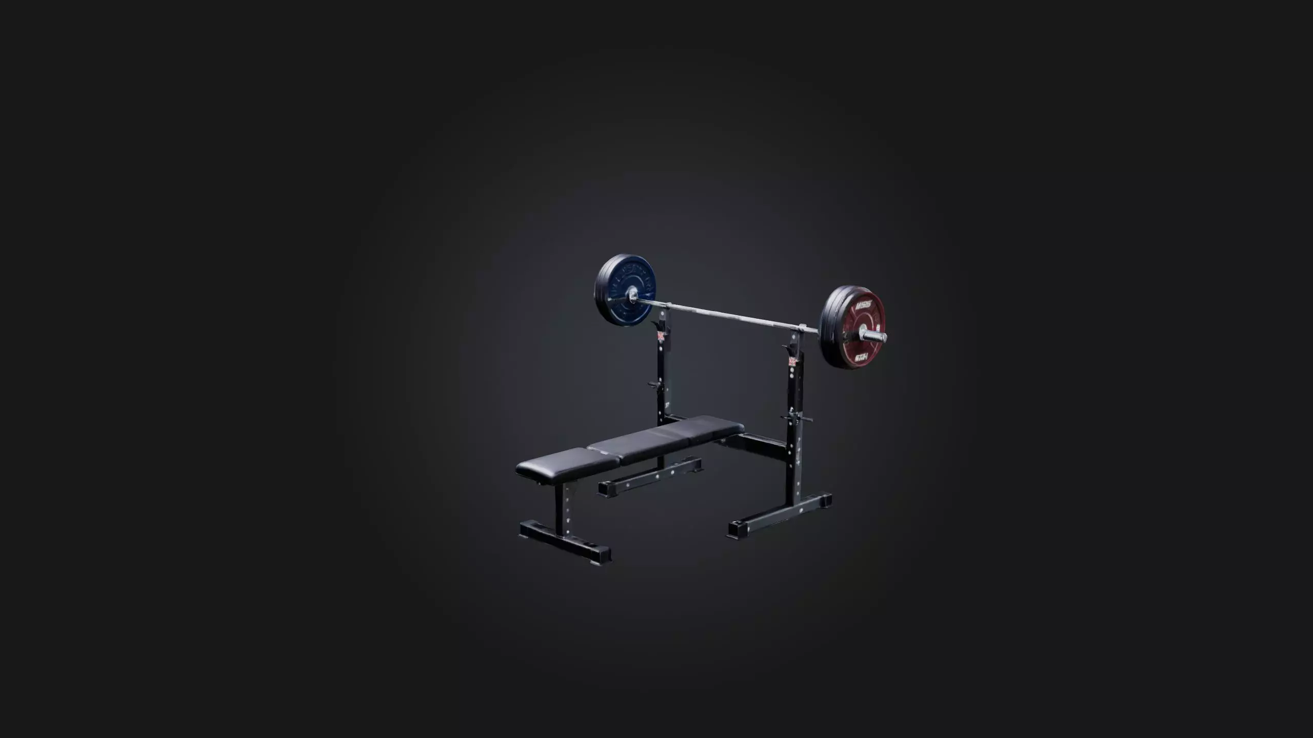 Un modelo 3D de un soporte para press de banca, ideal para proyectos relacionados con el fitness y el gimnasio. Formatos de archivo disponibles: FBX, OBJ, STL, GLB, USDZ, BLEND.