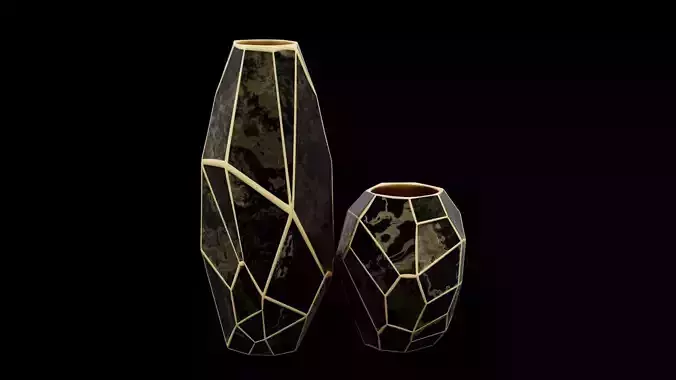 This is a high-quality 3D model of a table decoration featuring a black arrangement in a gold hexagon-shaped vase, perfect for luxury interior renders, architectural visualization, and virtual staging.