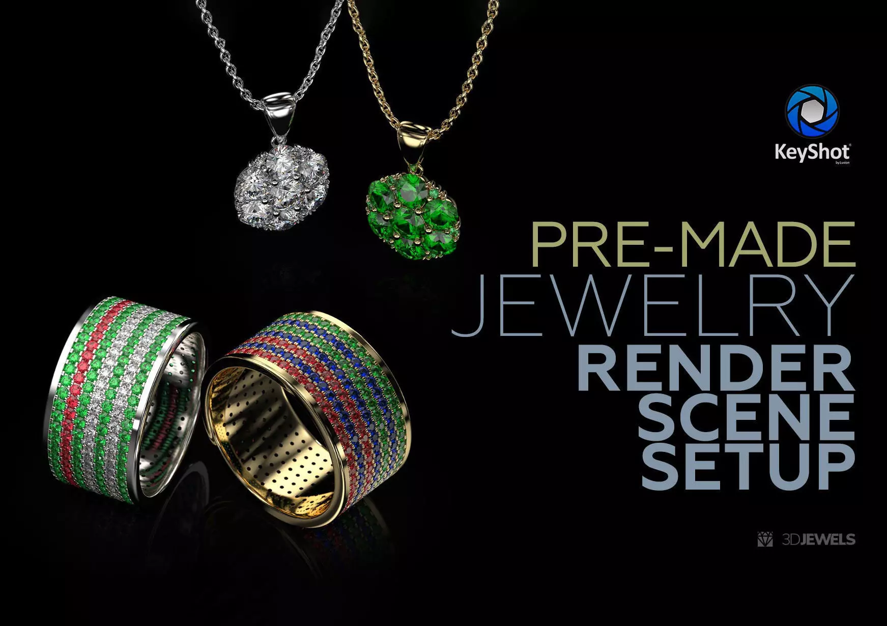 - 3 gemstone KeyShot materials (ruby, sapphire, emerald)