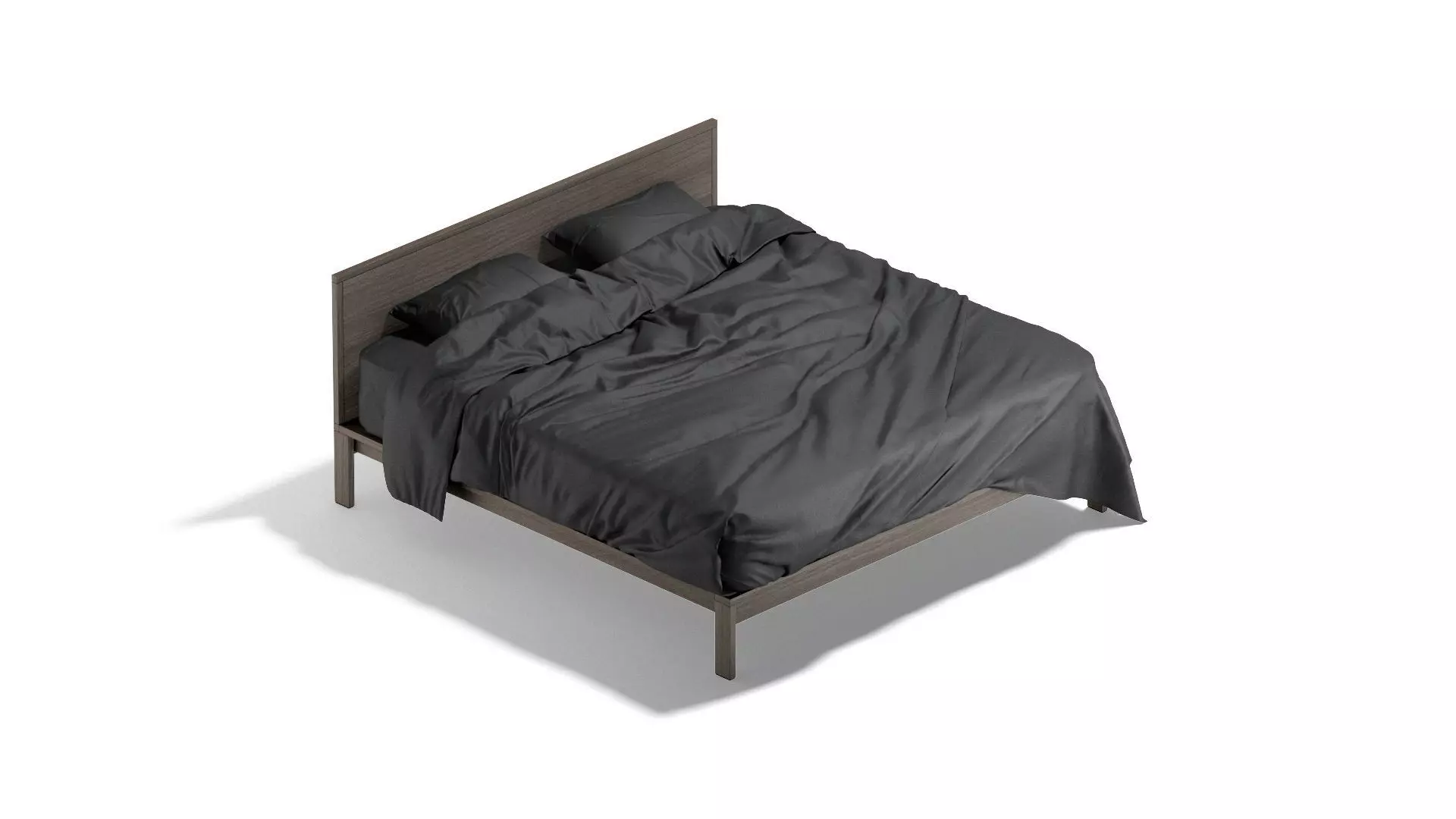 Black Wooden Double Bed - bedding with pillow and mattress 3D model