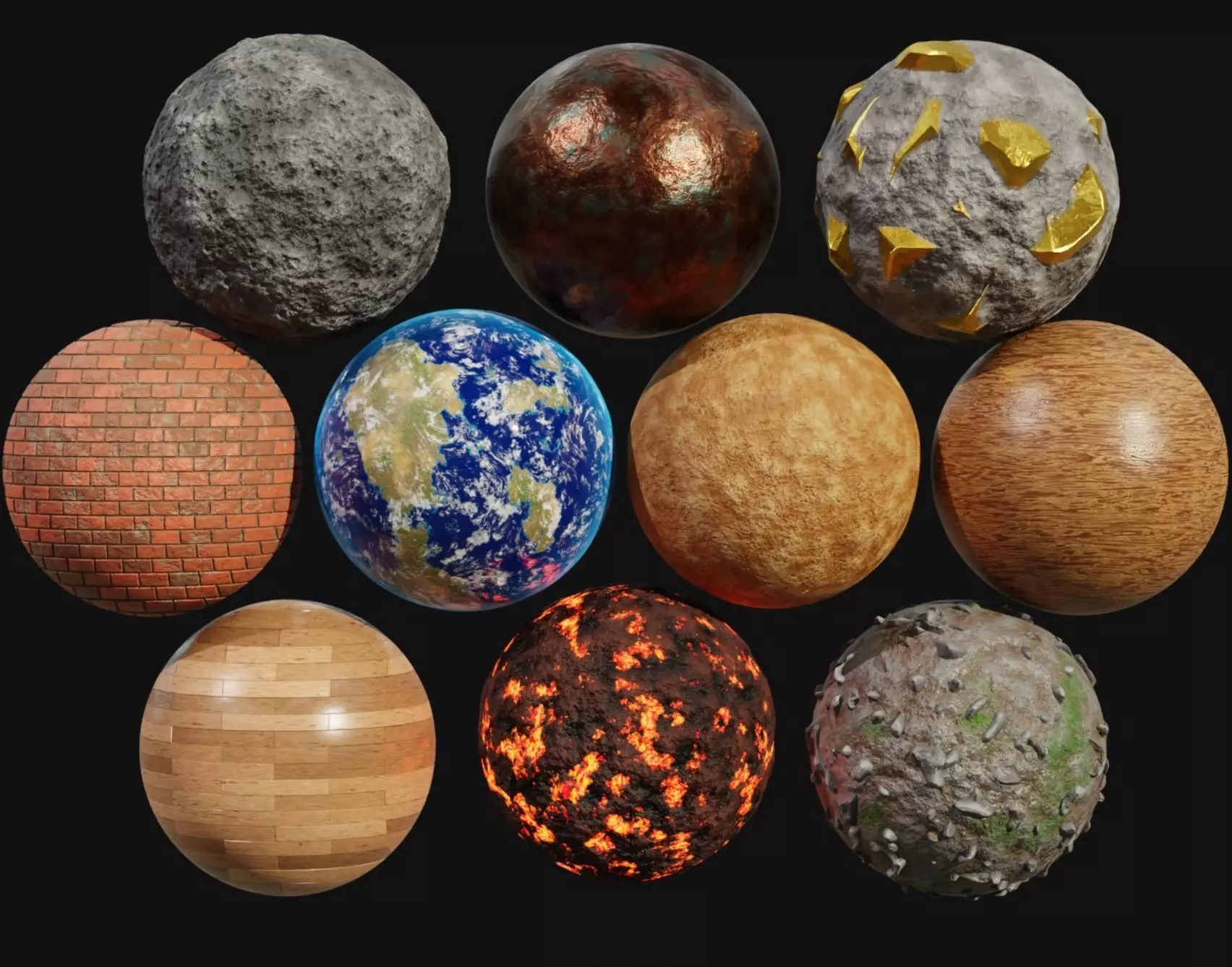 The model has material settings that define how surfaces look (color, shine, transparency, etc.).