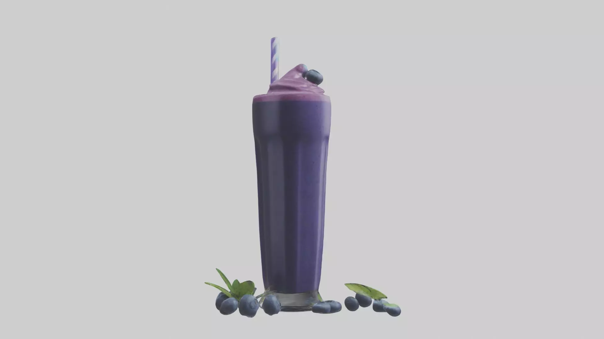 yaban mersinli smoothie, smoothie, içecek, yiyecek, 3D model, mor, meyve, sağlıklı, ferahlatıcı, bardak, fincan, FBX, OBJ, STL, GLB, USDZ, BLEND, yaban mersini, süsleme.