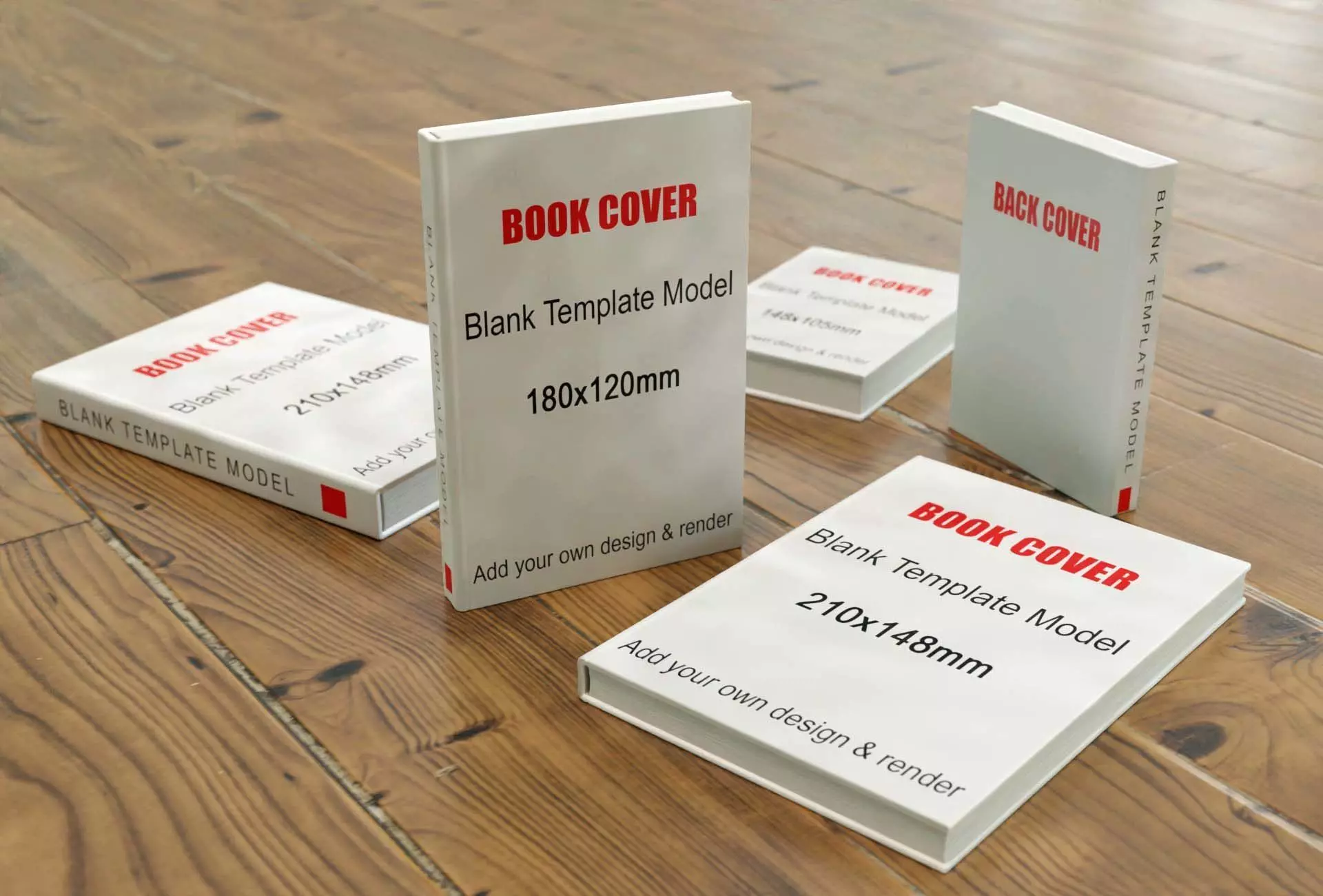 7 Book 3D model Blender - In various sizes. Blank templates for rendering books and product-design / placeholders. Comes with 7 template files for adding your own design to. Also, each model has two thicknesses: 18mm and 24mm.