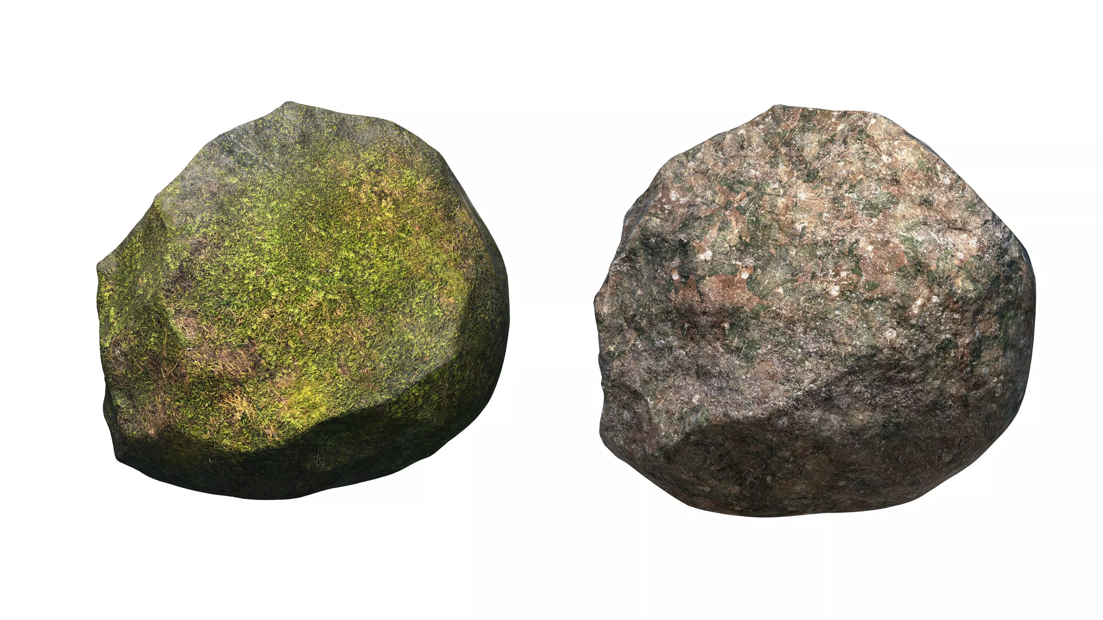 Each boulder is carefully modelled to provide realistic shapes and surface detail, with the mossy variant adding extra organic variation for forests, overgrown ruins, and nature-rich scenes. The models are optimised for modern 3D workflows and can be easily integrated into real-time engines or offline renders.