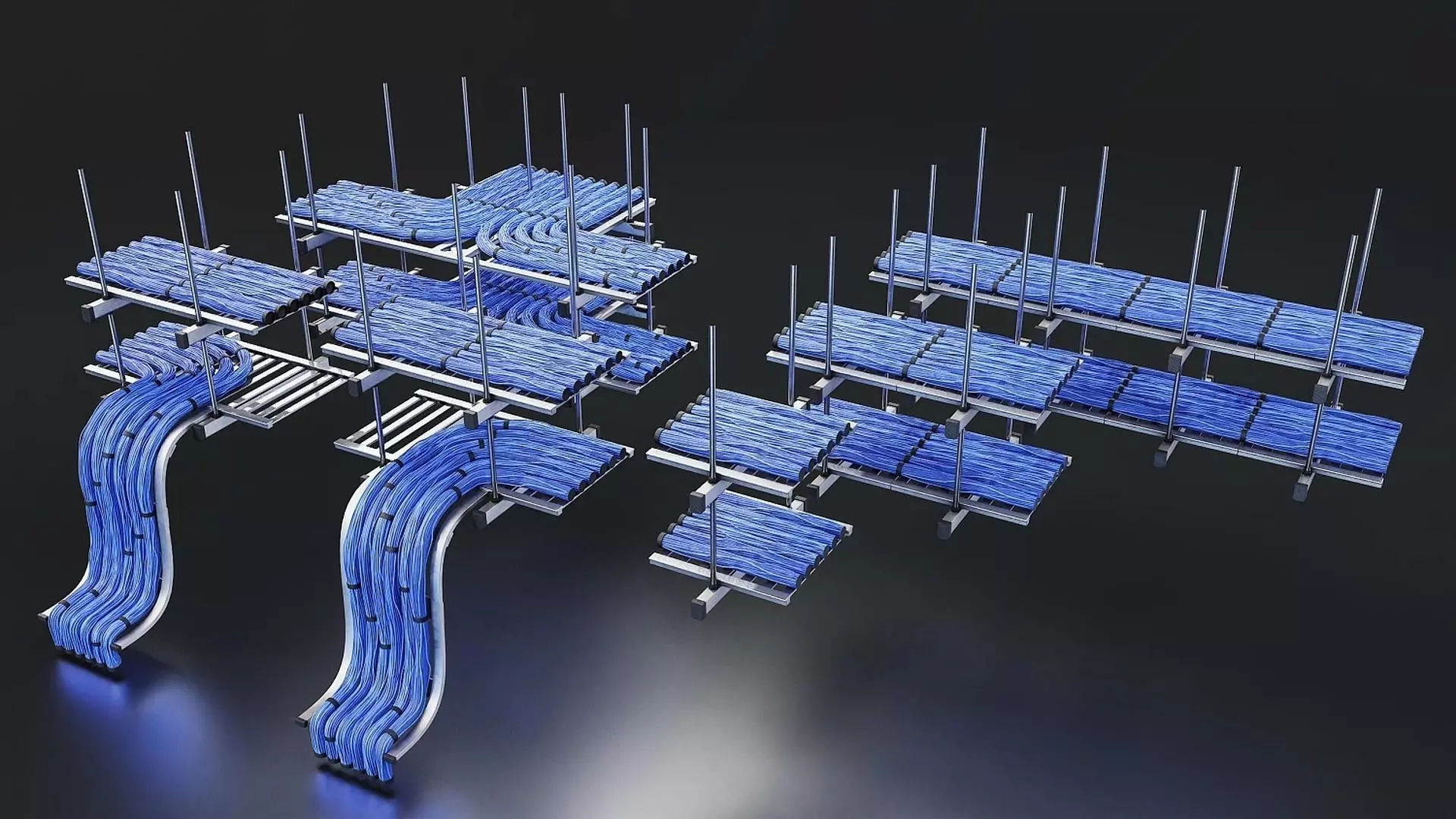 Cable Tray System with Blue Wiring Low-poly 3D model