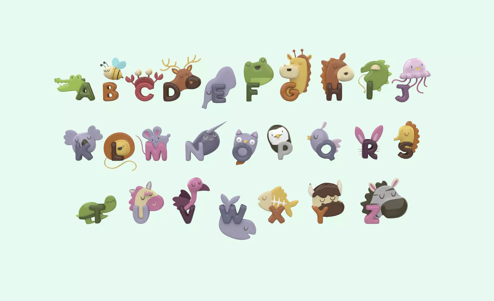 Cartoon Animal Alphabet v015 is a comprehensive collection of alphabet letters designed with adorable cartoon animal characters.