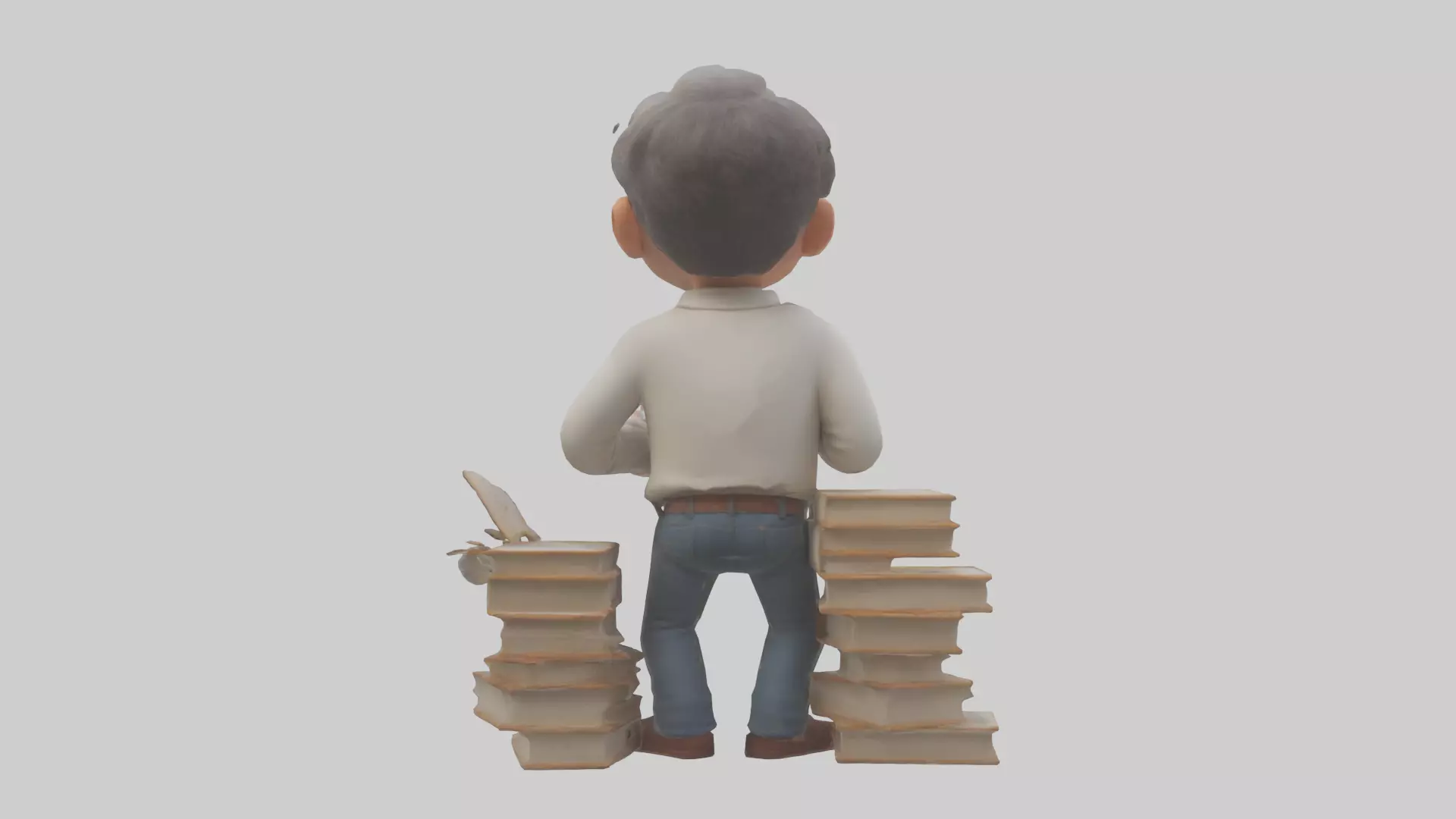 [Este modelo 3D presenta un personaje estilo caricatura que representa a un autor, ideal para animaciones, juegos e ilustraciones.] Formatos de archivo disponibles: FBX, OBJ, STL, GLB, USDZ, BLEND.
