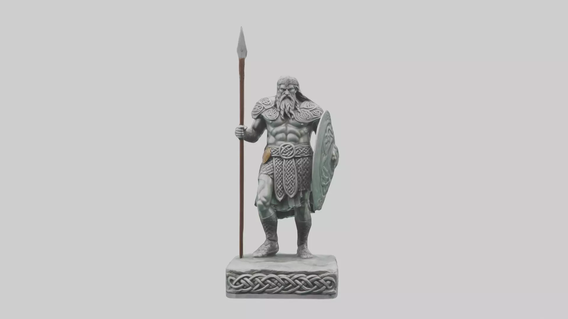 Concise 3D model of a Celtic Warrior statue. Depicts a 3D representation of a statue of a warrior from the Celtic cultures of ancient Europe. This could represent warriors from various periods and regions, such as Gaul, Britain, Ireland, or other Celtic territories. The model should capture characteristic elements of Celtic warriors, which might include specific hairstyles (like long hair or braided styles), facial hair (beards or moustaches), and attire (tunics, trousers, possibly torcs or other Celtic jewelry). The warrior might be depicted with traditional Celtic weapons such as swords, spears, or axes, and possibly wearing armor or carrying a shield with Celtic knotwork or other characteristic designs. The pose could be static and imposing, or dynamic and ready for battle. The style can range from historically accurate representations based on archaeological findings to more romanticized or fantasy-inspired interpretations. The material of the statue could be imagined as bronze, stone (like granite or sandstone), or even wood. Suitable for historical visualizations, fantasy art, game development (especially for historical or mythological settings), and projects related to ancient history, Celtic mythology, or European cultures. Available in FBX, OBJ, STL, GLB, USDZ, and BLEND formats.