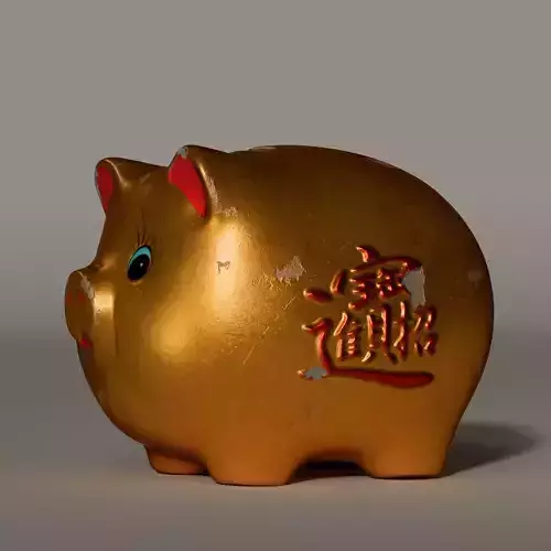 Handmade-style Chinese Piggy bank, damaged and scratched. Inspired by a piggy bank from the early 2000s.