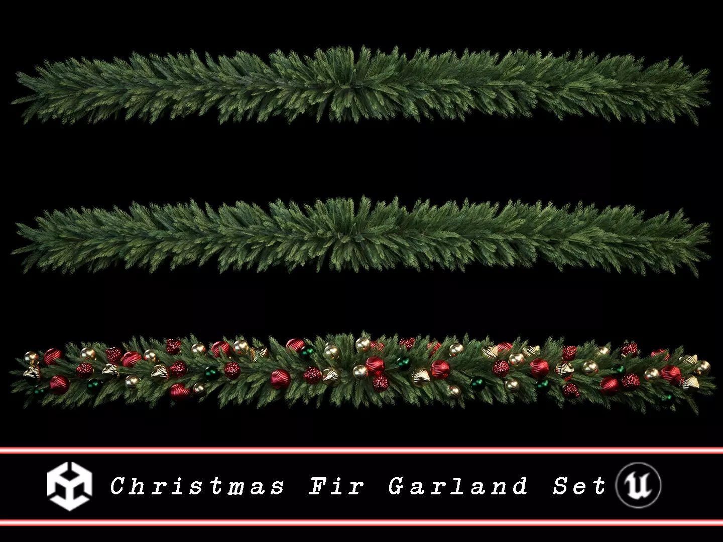 Christmas Fir Garland Set 3D Model. This model contains the Christmas Fir Garland Set itself