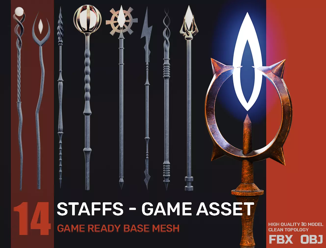 This collection features 14 3D Staffs models, designed with a focus on clean topology and optimized for low poly usage. Each model comes fully UV unwrapped, ready for texturing or further customization. These base mesh models are ideal for use in a variety of 3D applications, from product visualization to gaming and animation, offering high-quality geometry that balances detail with performance. Whether you're looking to create realistic renders or integrate them into interactive environments, this collection provides a solid foundation for your next project.