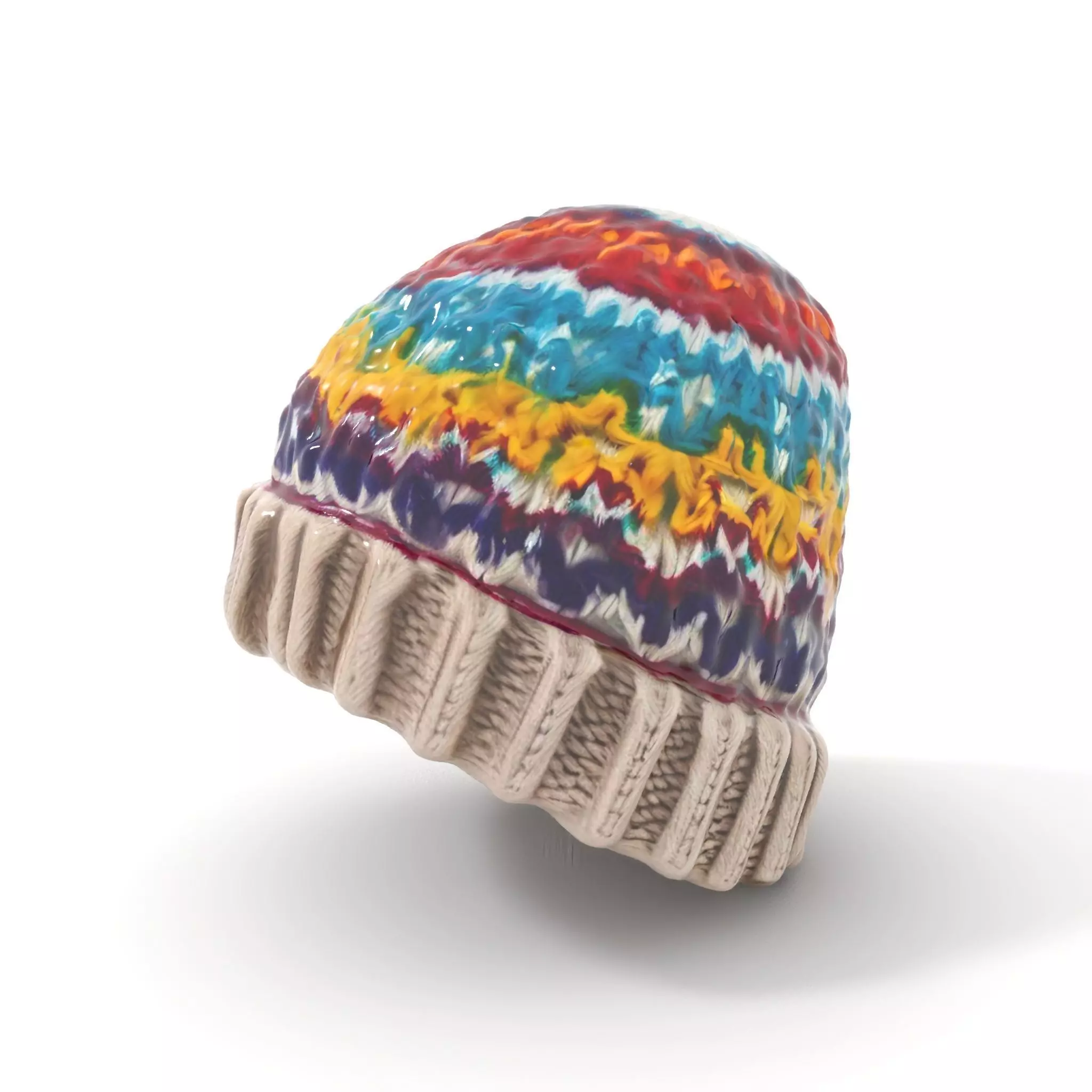 This colorful knit beanie model is designed for creators seeking a realistic and detailed piece of winter attire. Its vibrant colors and intricate pattern make it suitable for animation, virtual fashion shows, or winter-themed game environments.