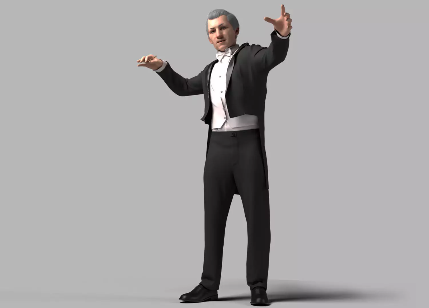 A familiar picture to music lovers: a concert hall, the audience and the orchestra have taken their places. Discord. Everything around is filled with the solemn joy of anticipation. The conductor comes out on stage to applause, climbs onto the platform and calmly greets the greetings of the audience and the musicians. His movements are restrained, but they convey confidence and power. Turning to the orchestra, he looks around at it with an attentive gaze. The hall freezes in anticipation. A slight wave of his hand - and the silence turns into a stream of music, as if born from his movements...Low-poly 3D model created in Blender, optimal renderer Cycles. Detailed enough for close-up rendering. Ready for multi-purpose use: interior element, game attribute, advertising, etc. The 3D model has UV-unwrapping and comes with detailed textures. Texture resolution is 4096x4096 jpg.WinRAR texture archive includes:• Bace color• Normal OpenGL• Occlusion• Opacity• Roughness