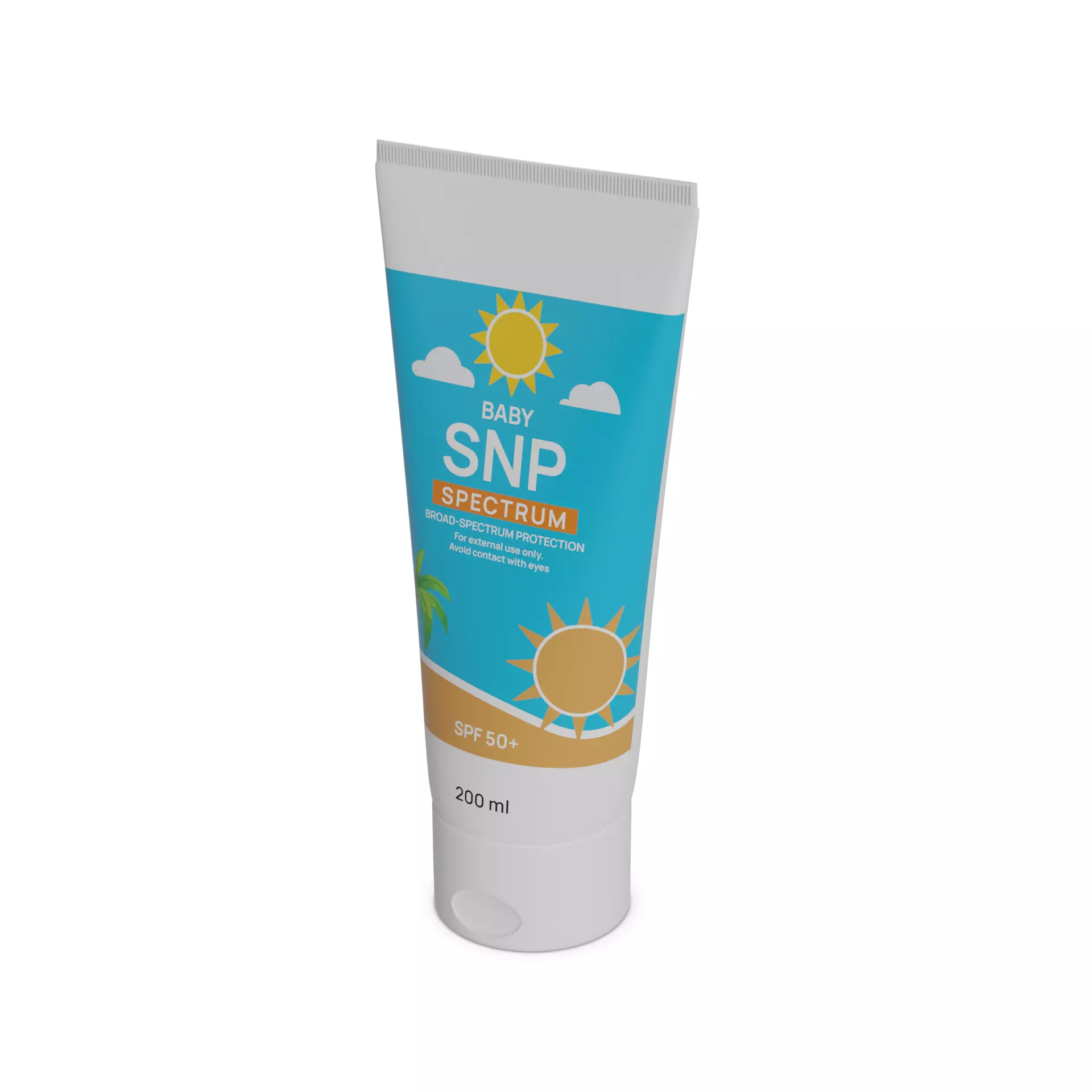Baby Sunscreen: Protect your baby's delicate skin from the harmful rays of the sun with this sunscreen lotion. The lotion comes in a squeezable tube with a flip-top cap, making it easy to apply. The packaging features a sunny beach scene, with a label that reads Broad-spectrum protection and SPF 50+. The lotion is lightweight and non-greasy, providing effective sun protection without clogging pores.