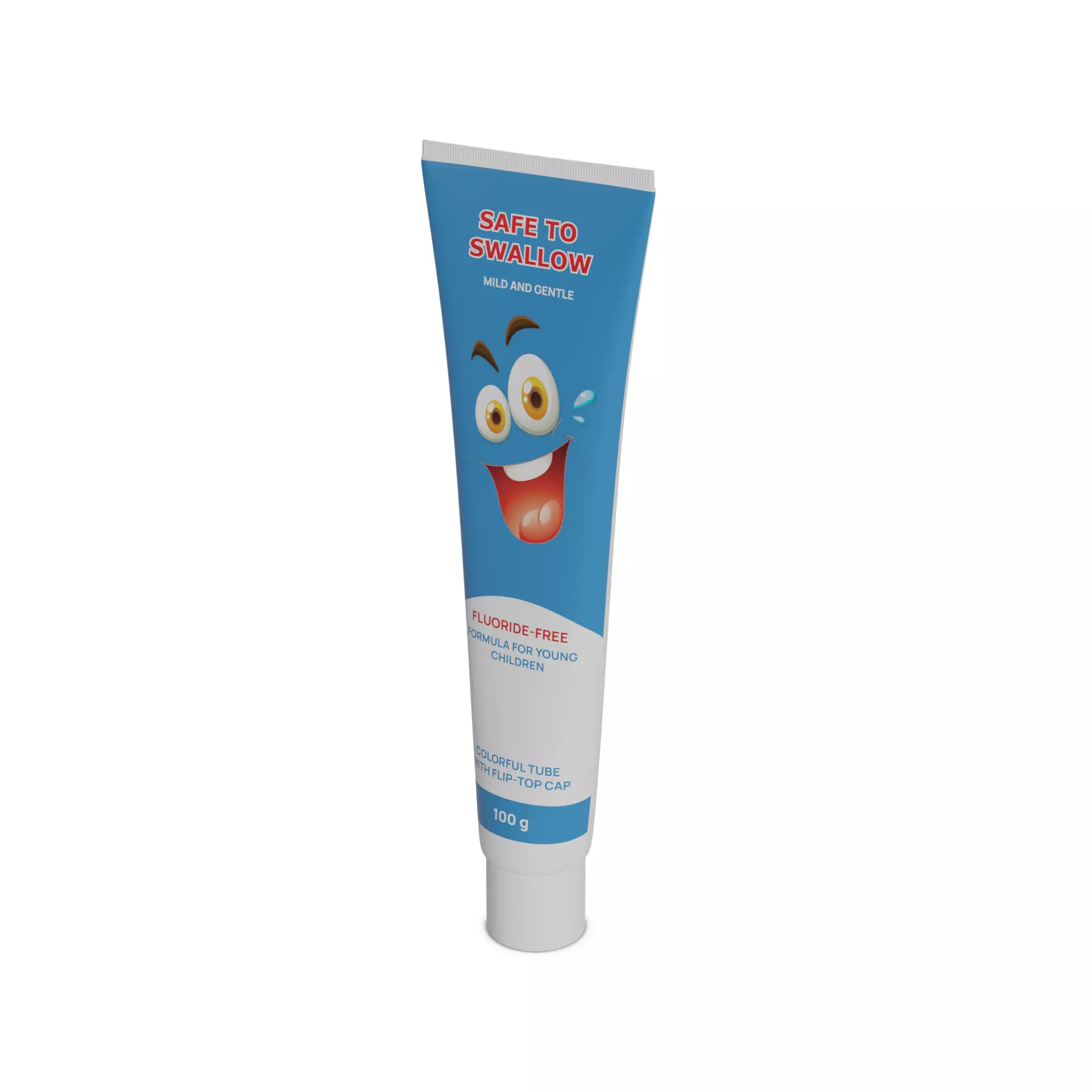 Baby Toothpaste: Introduce good oral hygiene habits to your little one with this fluoride-free toothpaste. The toothpaste comes in a colorful tube with a flip-top cap, making brushing teeth a fun and enjoyable experience. The packaging features a smiling tooth character, with a label that reads Safe to swallow and Mild and gentle. The toothpaste has a fruity flavor, making it appealing to young children.