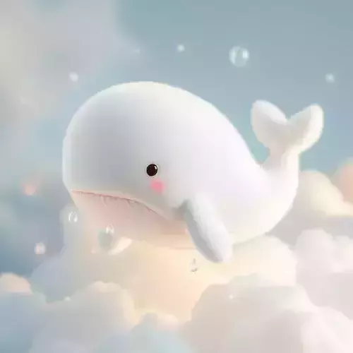 Download the enchanting 3D model of a cute cloud whale, a digital recreation of a whimsical, dreamlike creature that blends the majesty of marine life with the softness of clouds. This cloud whale 3D model features a plump, rounded body covered in fluffy, off-white fur that mimics both wool and cumulus clouds — giving it an irresistibly huggable appearance. Its face is adorned with small, expressive black eyes, a tiny pink blush on its cheek, and a gentle smile that radiates warmth and innocence. The whale’s belly displays delicate, ribbed lines resembling baleen plates, while its flippers and tail are sculpted with smooth curves and subtle shading to enhance its floating, weightless quality. Tiny water droplets and translucent bubbles drift around it, reinforcing the illusion of an aquatic being suspended in the sky.