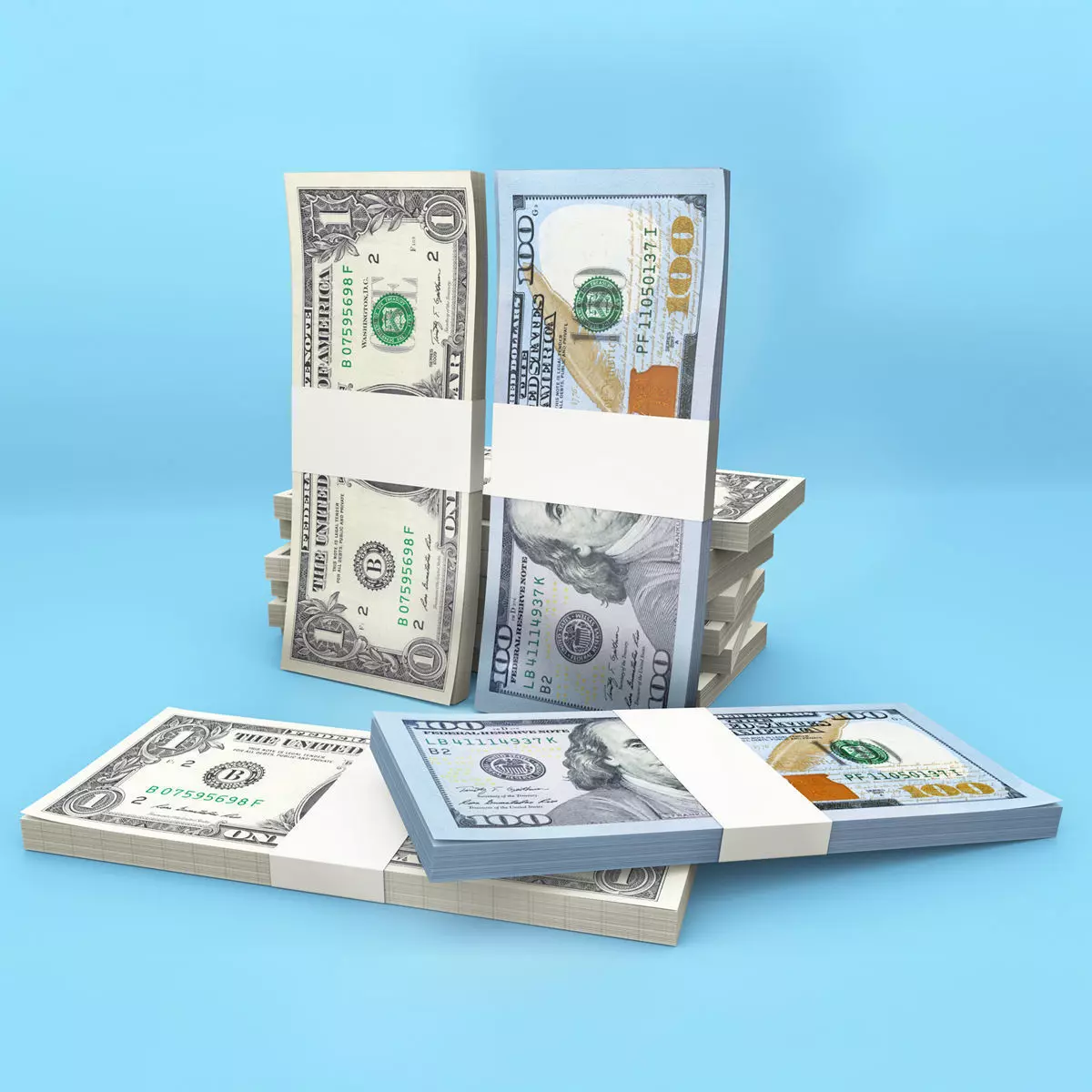 Dollar BillsThe fully textured 3D model of dollar bills, including several sets, is suitable for any visual product, adding realism to your project.The model was created in Cinema 4D R25. The HDRIs are Cinema 4D's own materials, compatible with other programs, editable, and rendered within the same program. It is backward and forward compatible with Cinema 4D R25.